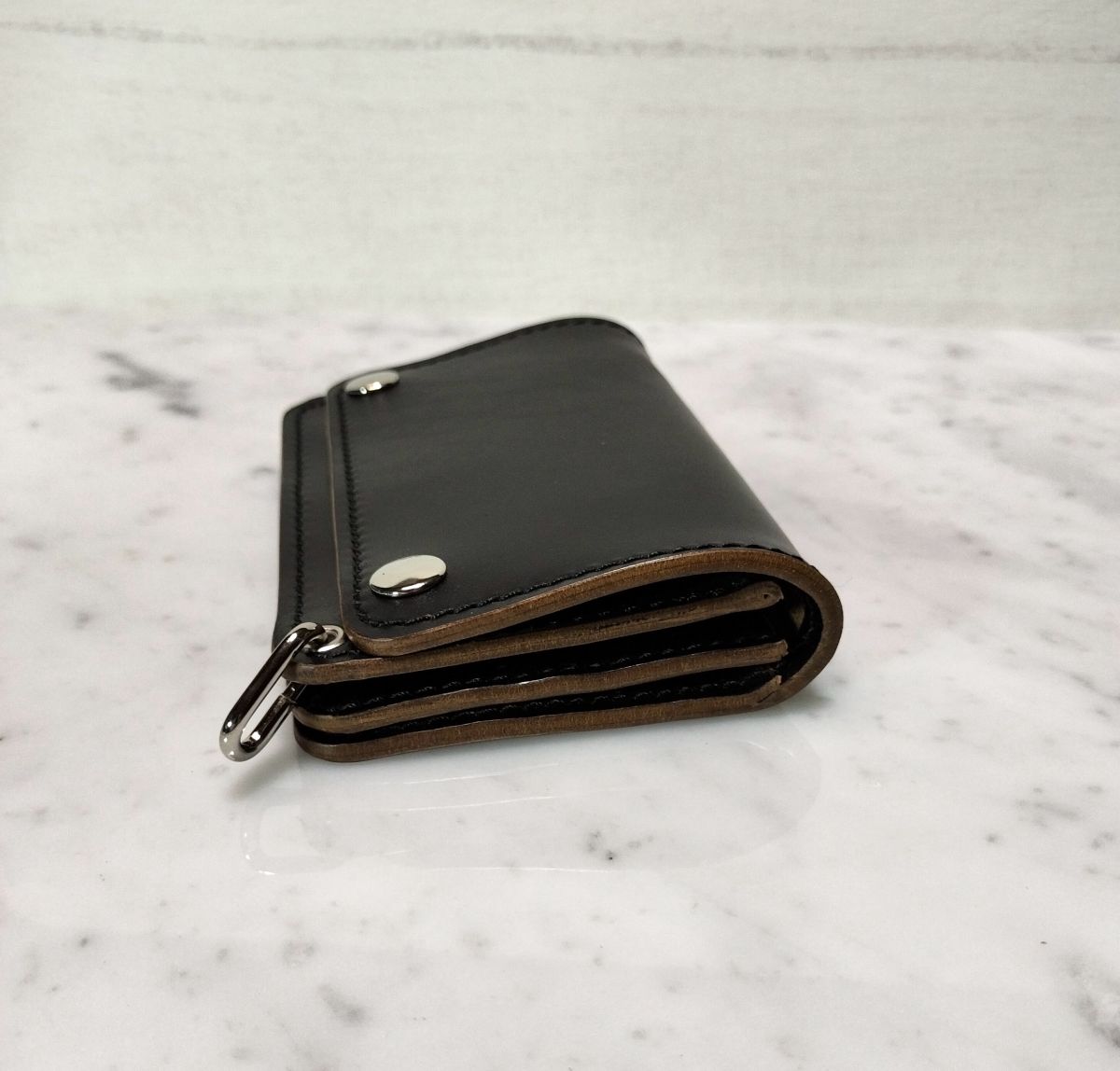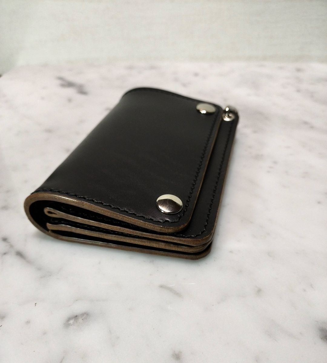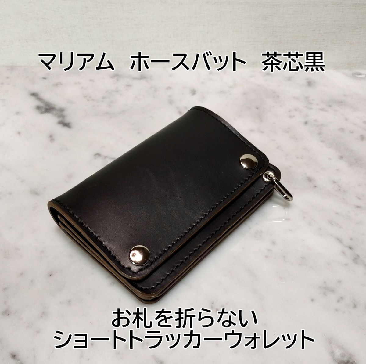 ホースバットを贅沢に使用したハンドメイドトラッカーウォレットになります。
