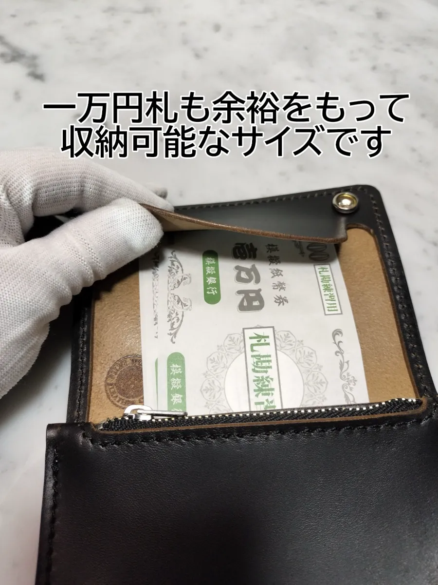 札入れスペースは余裕を持って一万円札が入る設計になります。
