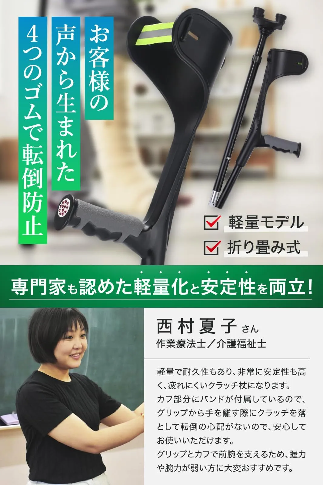 【健康雑誌掲載! 作業療法士監修】 ロフストランドクラッチ 松葉杖 まつばづえ 折りたたみ 折り畳み ステッキ アルミニウム 軽量 歩行補助 リハビリ 適応身長(参考):150~185cm mugenbo
