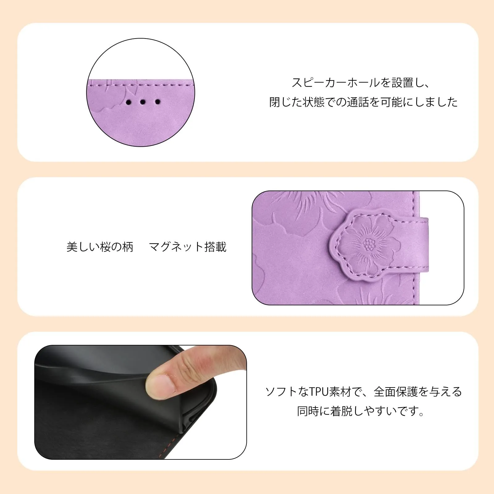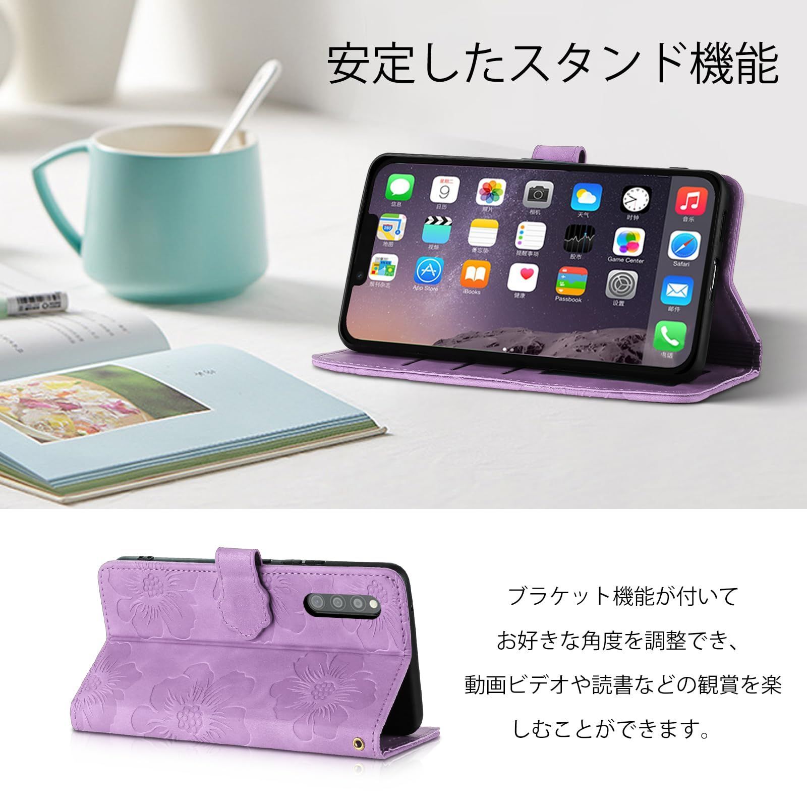 Galaxy A41 ケース 手帳型 人気 カバー おしゃれ ギャラクシーa41ケース手帳型 高級PUレザー 本革 スマホケース 耐衝撃 手帳型 Galaxy A41 SCV48 / SC-41A ケース 手帳型 かわい い 美しい桜の柄 スマホカバー お洒落 galaxya41スマホケース ケース手帳 カード収納 マグネット式 スタンド機能 軽量 6.1インチ 対応 日本版(パープル)