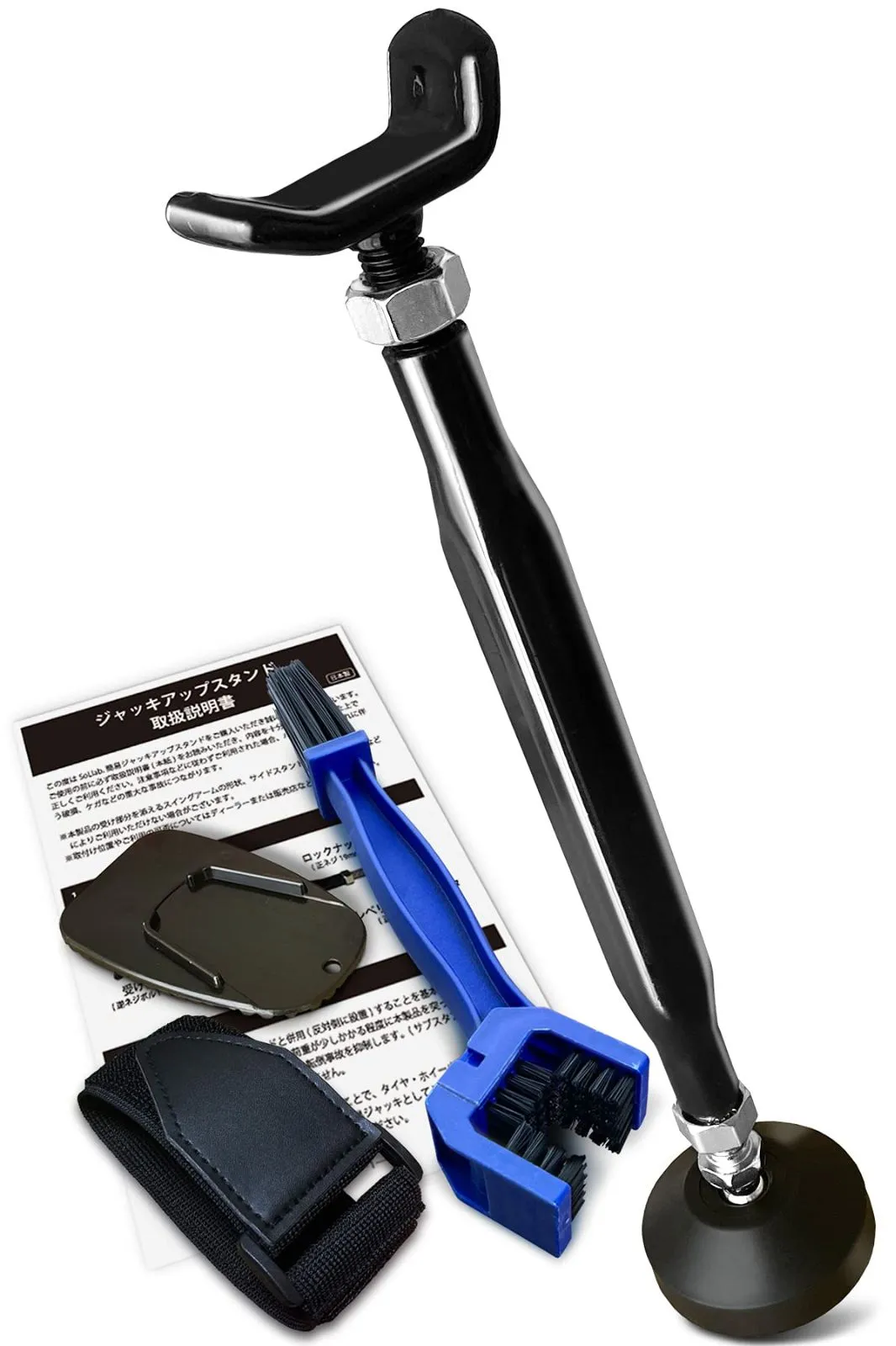 バイク メンテナンススタンド リア イージーリフトアップ 簡易ジャッキ 転倒防止 強風 地震対策 (ブレーキロック チェーンブラシ 床保護プレート セット)