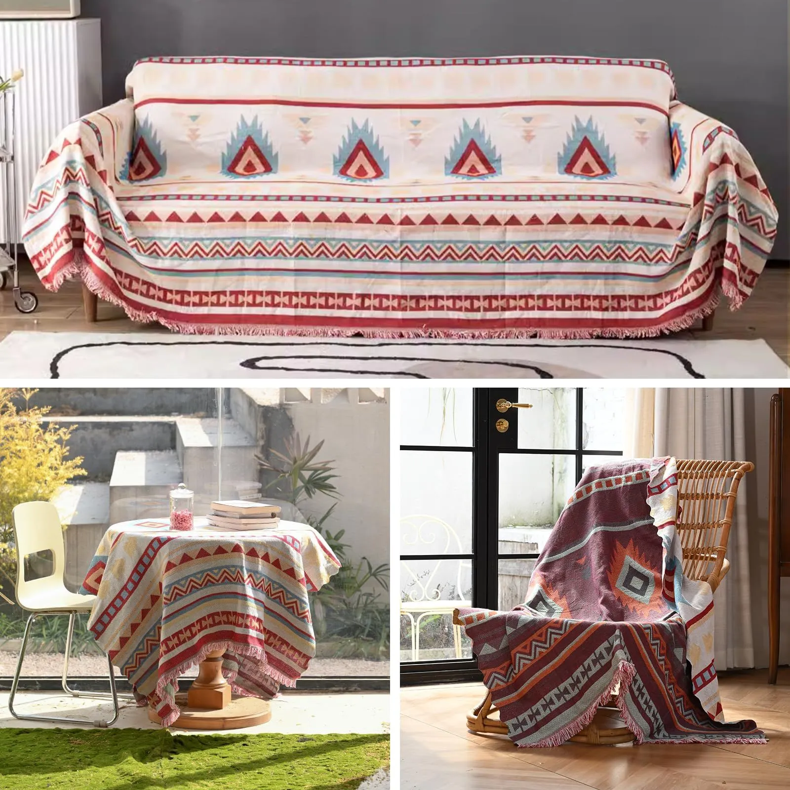 マルチカバー ソファーカバー 北欧 リバーシブル 多機能 ブランケット レジャーシート 毛布 ラグ テーブルクロス ベッドカバー ひざ掛け キャンプブランケット ピクニックマット マルチカバー 長方形 おしゃれ フリンジ付き 四季通用(180*300cm)