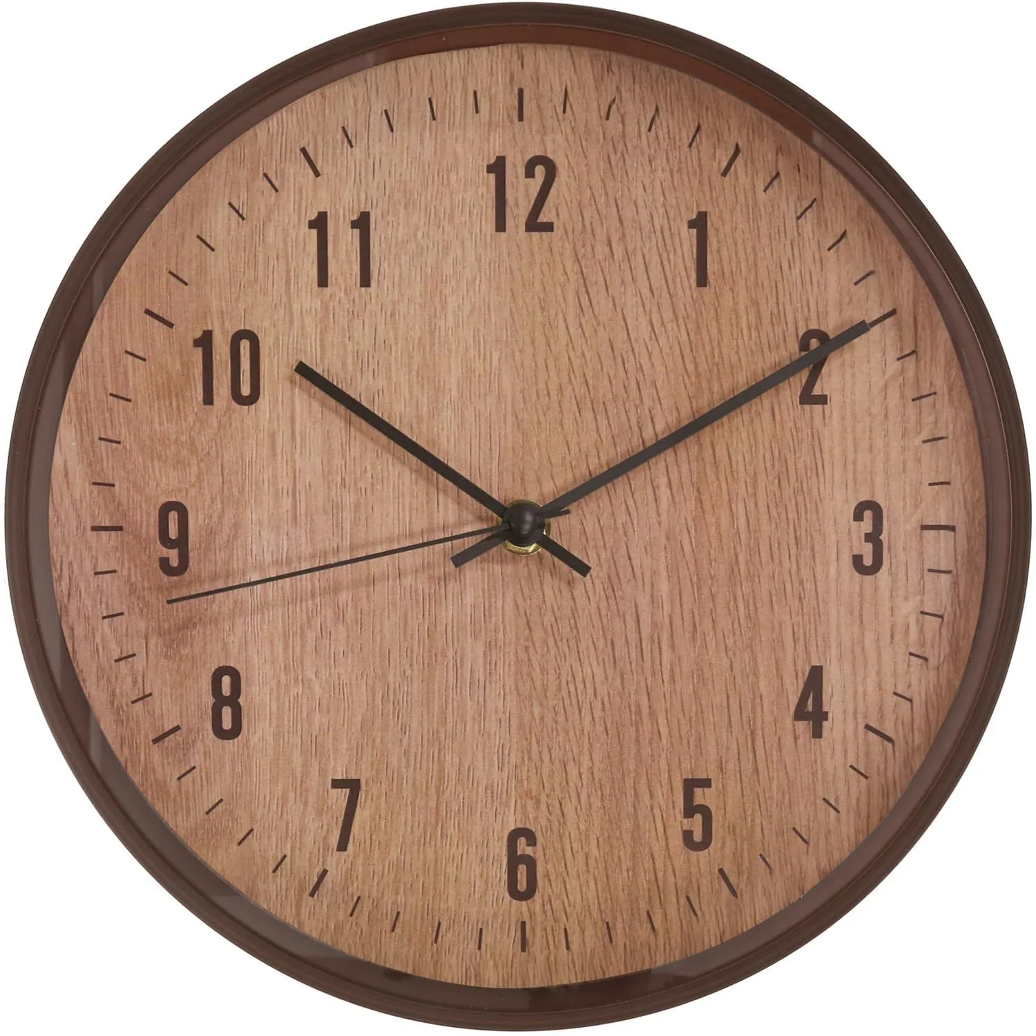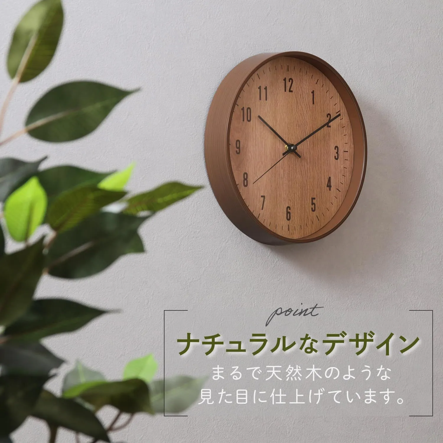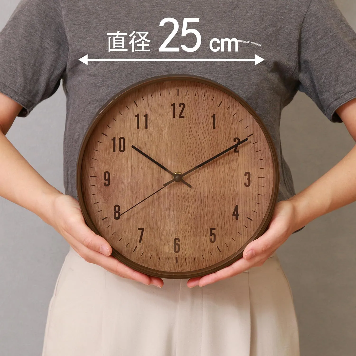 不二貿易 掛時計 ライフ 直径25cm 幅25×奥行4×高さ25cm ブラウン 木目調 シンプル 静音 39870