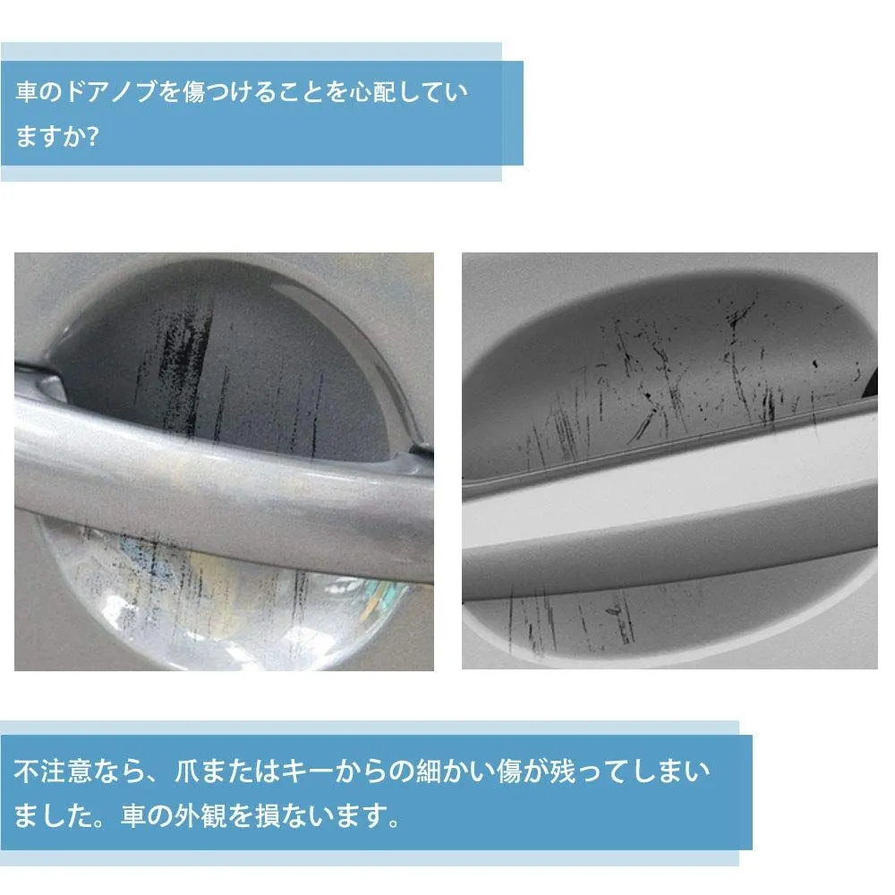 【ドアノブ傷防止】保護フィルムは爪などの細かい傷からボディを守れます。透明性に優れ、車の外観を損なうことがないです。