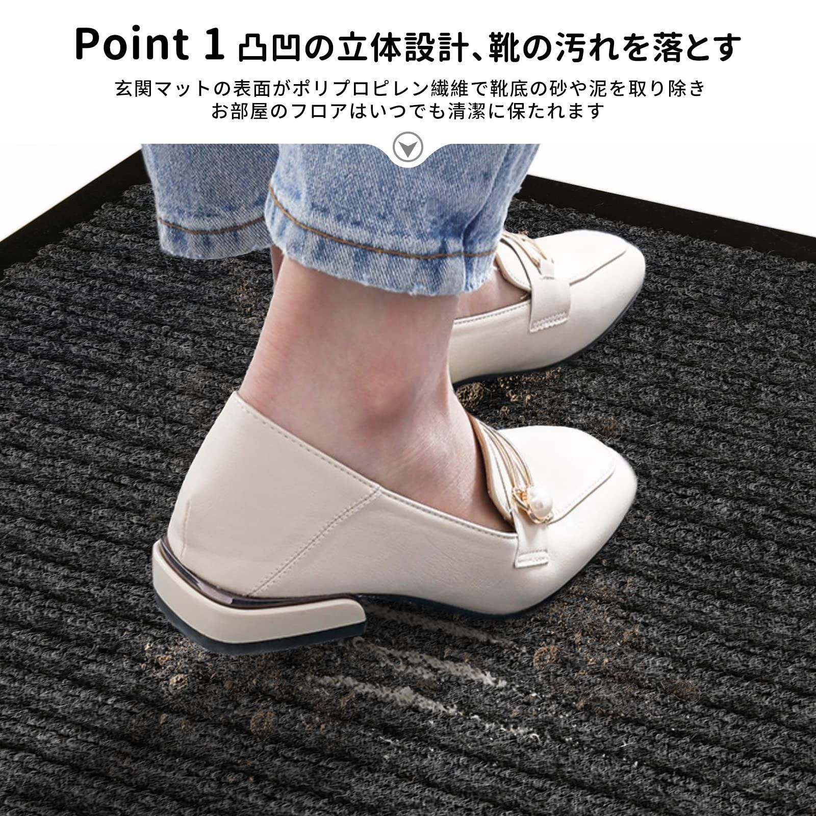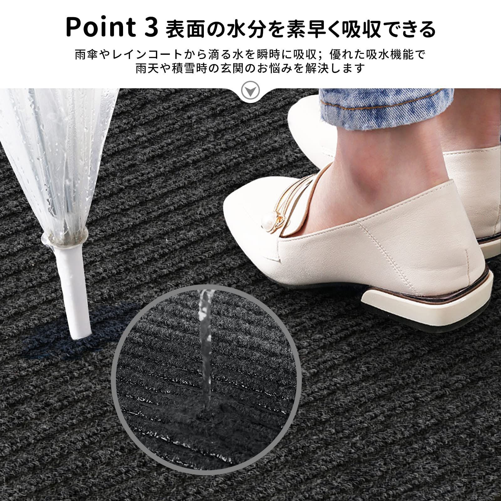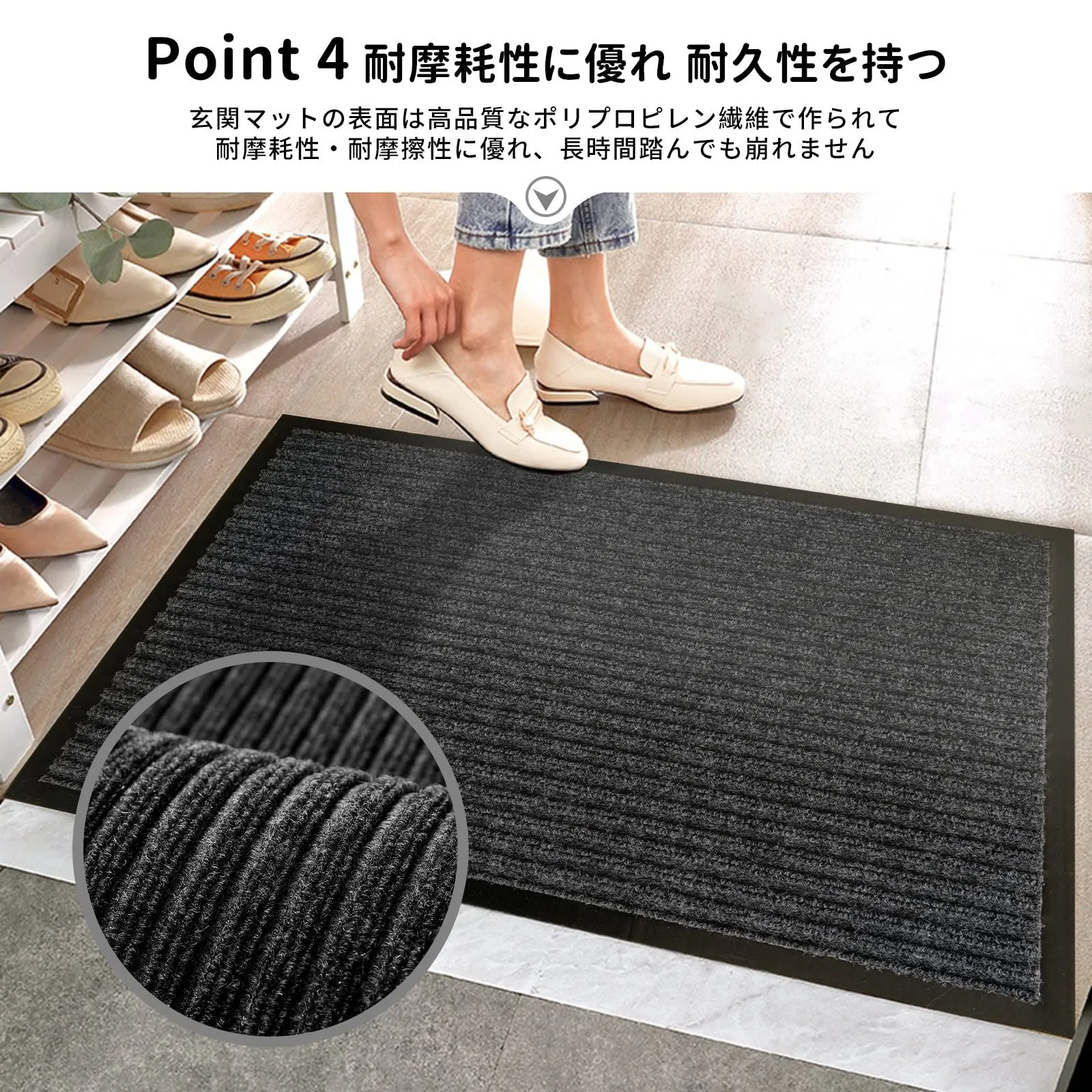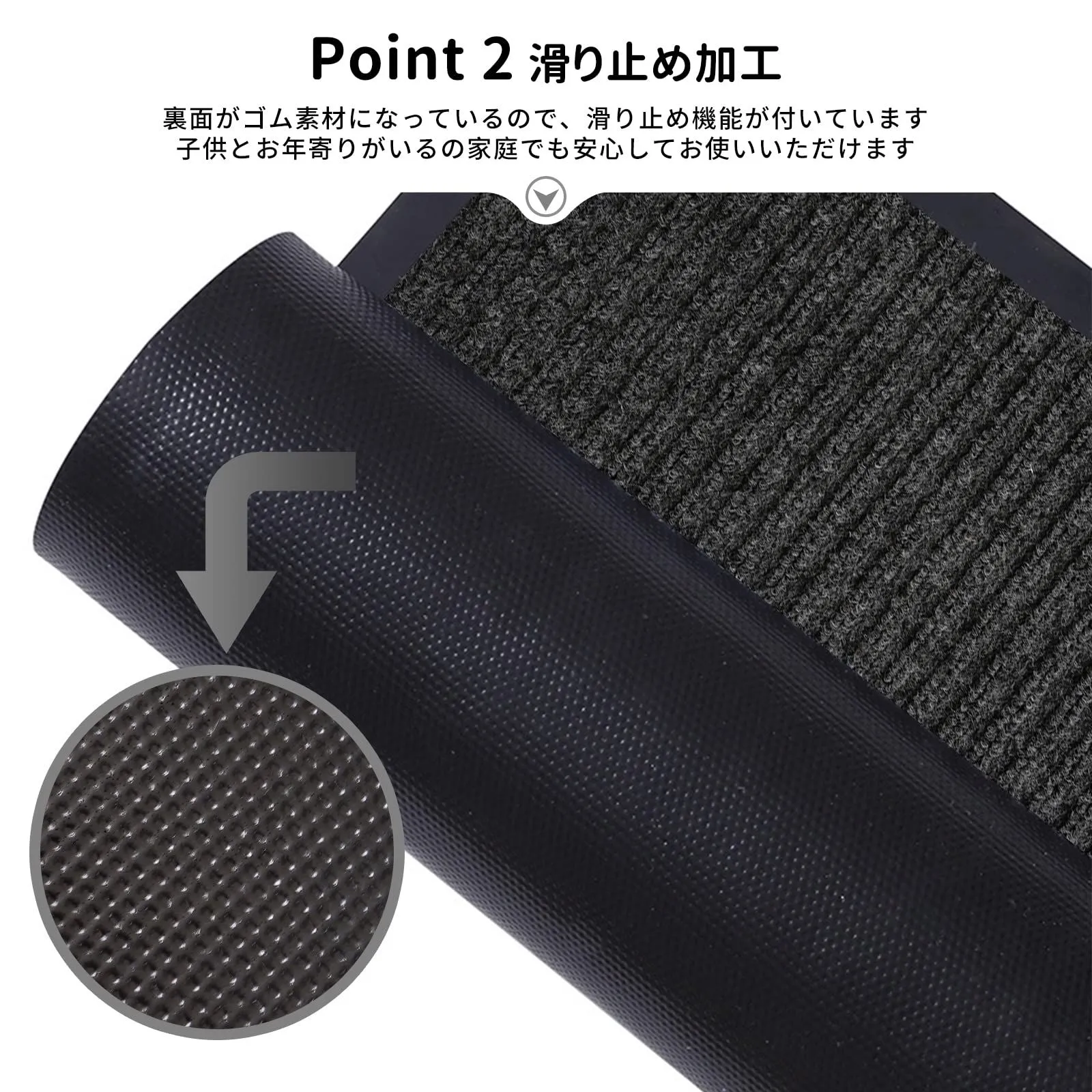 【耐磨性抜群&滑り止めマット】玄関マットの表面はポリプロピレン繊維な高品質材料で作られて、優れた強度と耐摩耗性を持っています。裏面にはしっかりと滑り止め加工が施されますので、マットのズレを防ぎます!子供とお年寄りがいるの家庭でも安心してお使いいただけます。