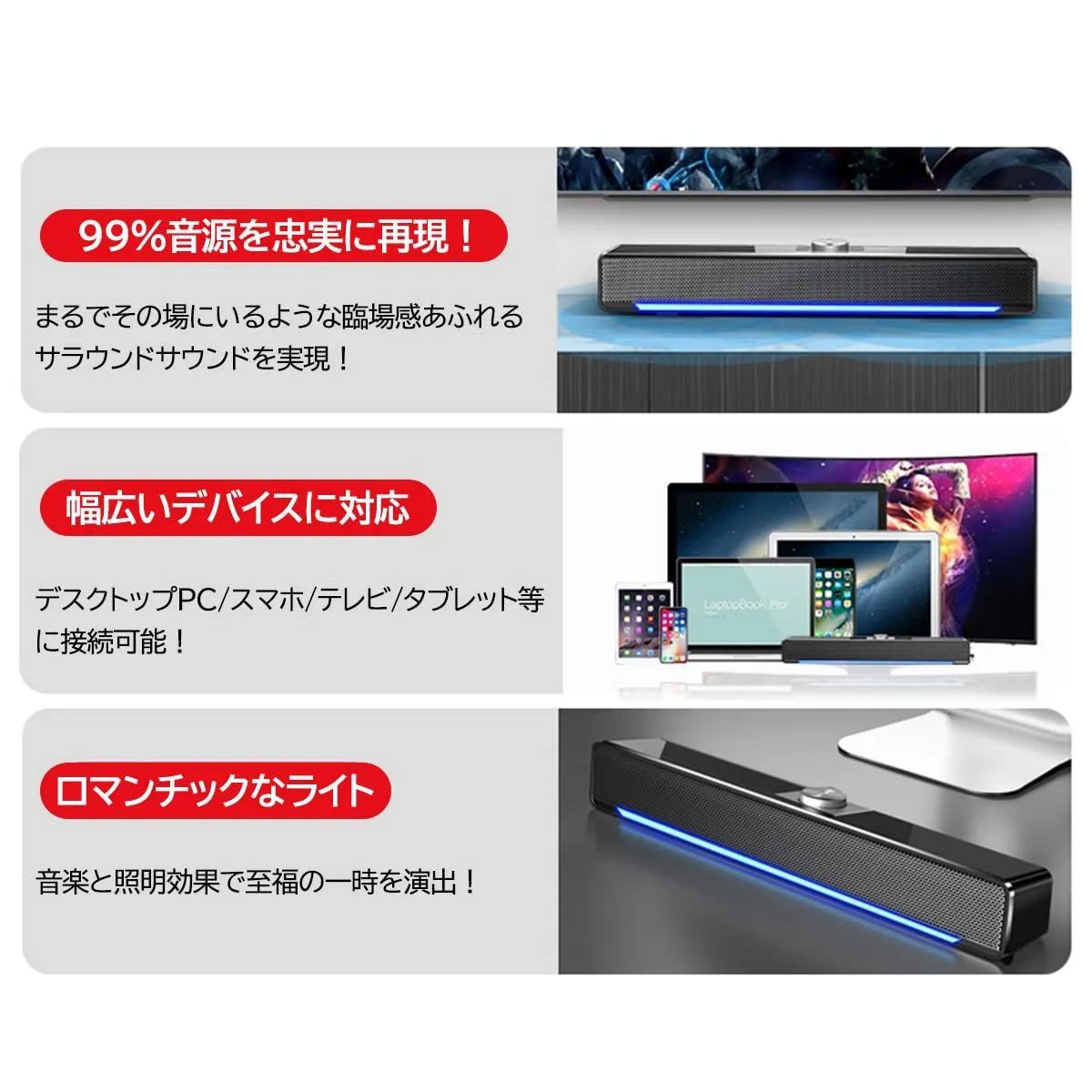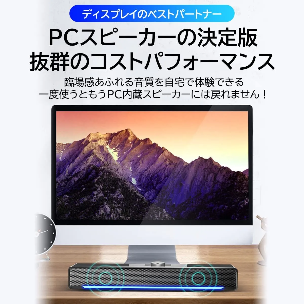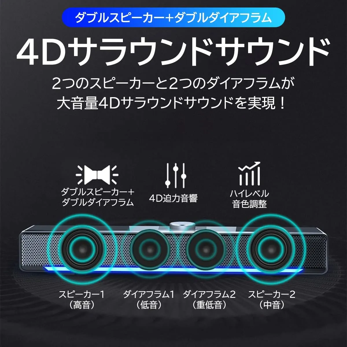 【OTOE】 スピーカー pc パソコン サウンドバー pcスピーカー パソコン用スピーカー テレビ USB給電 speaker 4Dサラウンドサウンド 最上位機種 (ブラック)