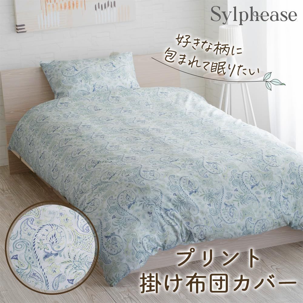 シルフィーズ 掛けふとんカバー シングル 150×210cm かけ布団カバー ピーチスキン 寝具 ずれ防止 柄 掛布団カバー 掛けカバー オールシーズン 軽い 洗える ペイズリー ブルー