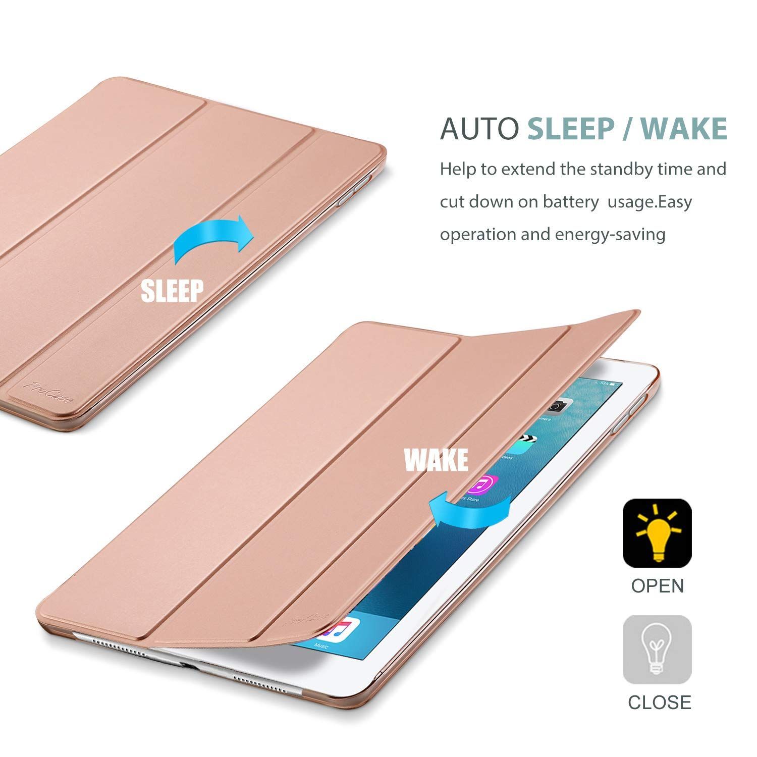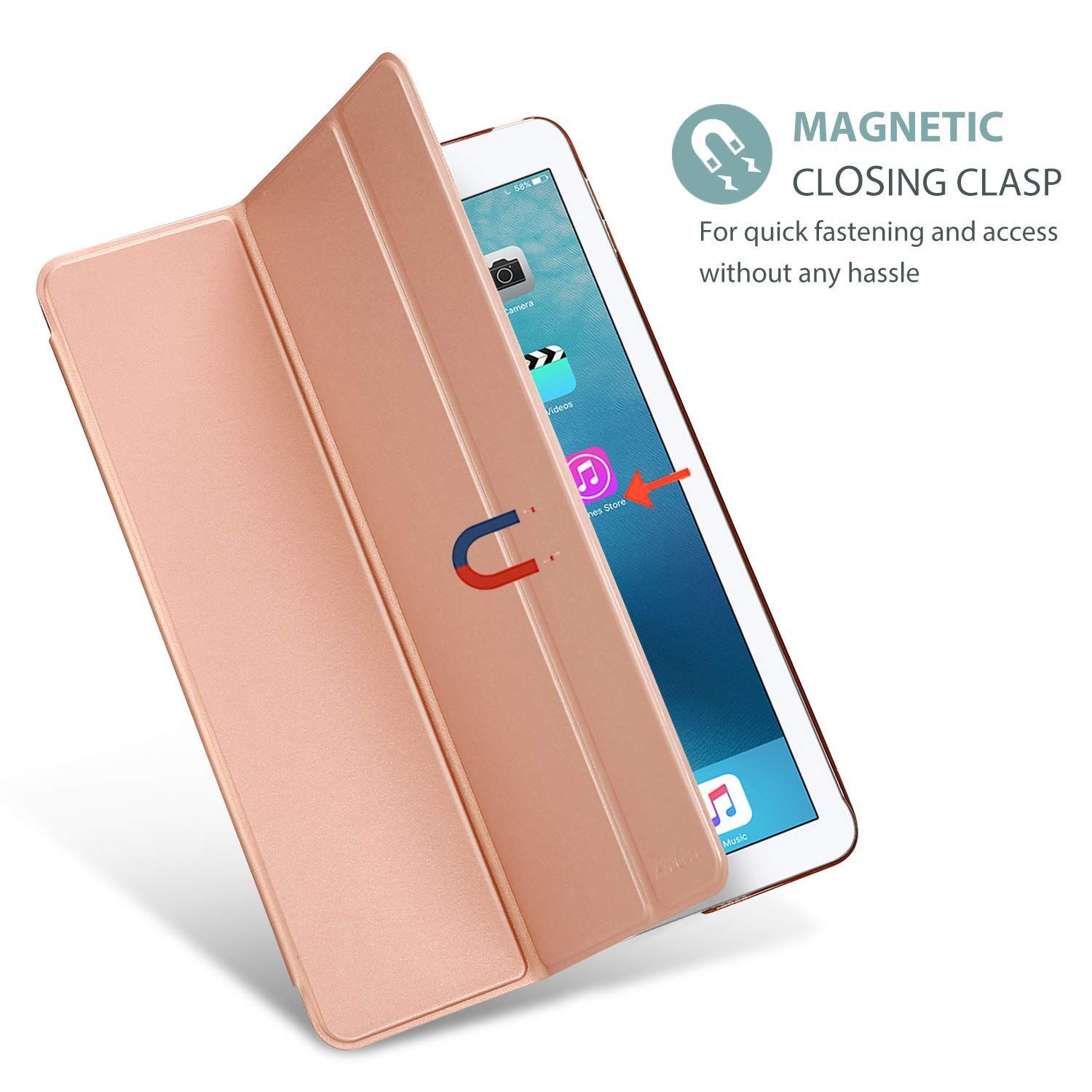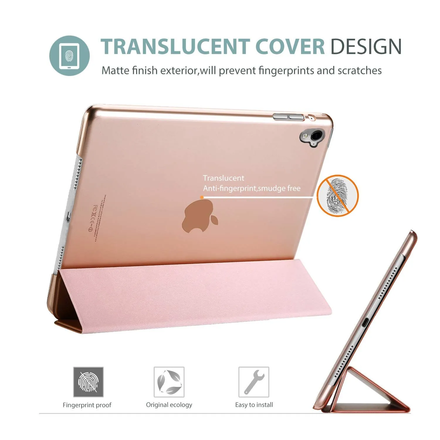 ProCase iPad Pro 9.7ケース スマート 超スリム スタンド フォリオ保護ケース 半透明フロスト バックカバー 対応機種: iPad Pro 9.7 2016 (A1673 A1674 A1675) - ローズゴールド