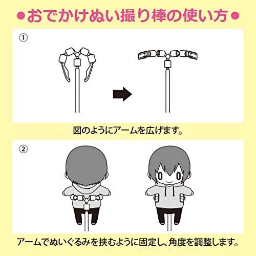 ぬい撮りがラクラク簡単にできるぬい撮り棒が登場! クリップ部分を机の端などに取り付けて固定ができる! クリップ部分にアクキーなどのグッズを挟んで撮影可能。アームでぬいぐるみを挟むように固定し、角度を調整して使ってね♪ サイズ:棒の長さ 約150mm アームの長さ(横に広げた状態)約125mm クリップの大きさ 約H55mm×W25mm 全体(棒+アーム+クリップ) 約245mm