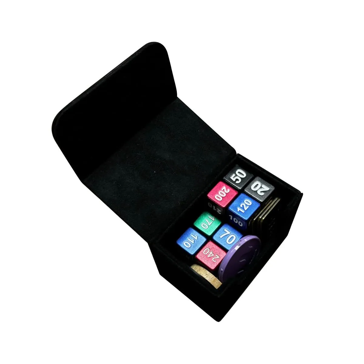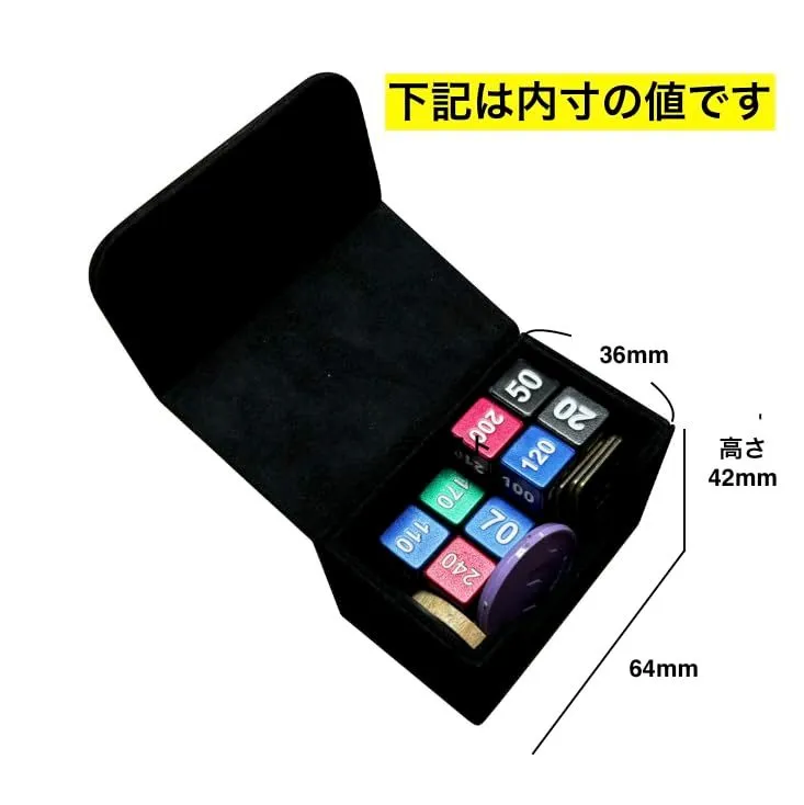 3. 小物ケースも優秀 コンパクトでありながら、ダイスやコインなどの小物もきちんと収まります。しっかり設計された収納スペースで、多様な小物を収納することが可能です。 使いやすさを追求したデザイン デザインは、使いやすさと携帯性を重視。対戦中の盤面においても大きすぎず、邪魔にならないサイズ。
