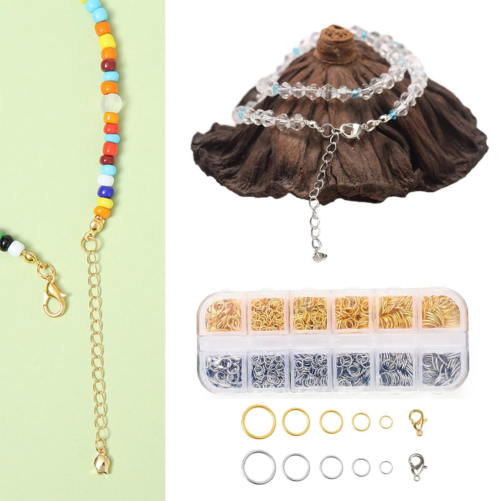 YFFSFDC 丸カン カニカン シルバー+ゴールド マルカン ジャンプリング マルカン 金具 留め具 基礎パーツ アクセサリー DIY 手芸用品 手作り素材 合計約1140個