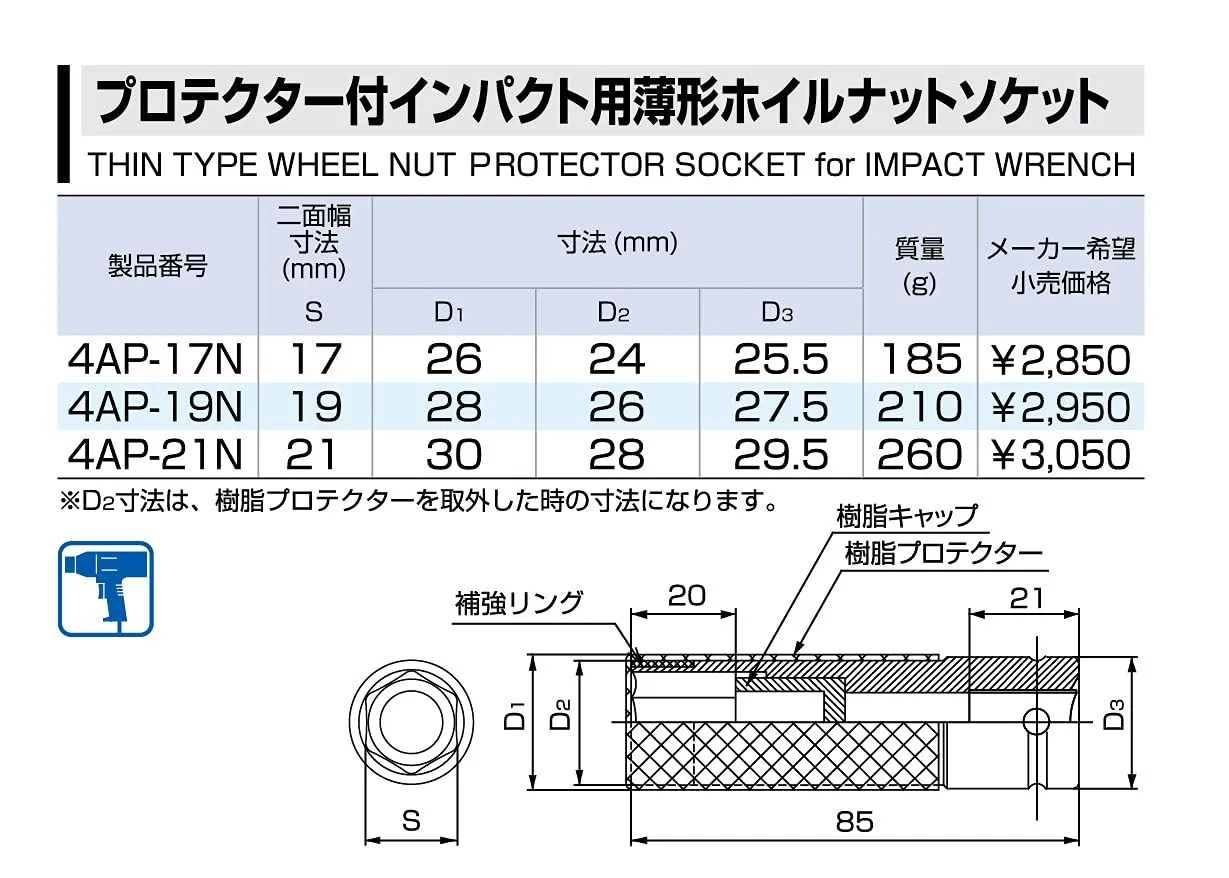 用途:自動車専用ホイールナットの締付け・緩め作業専用