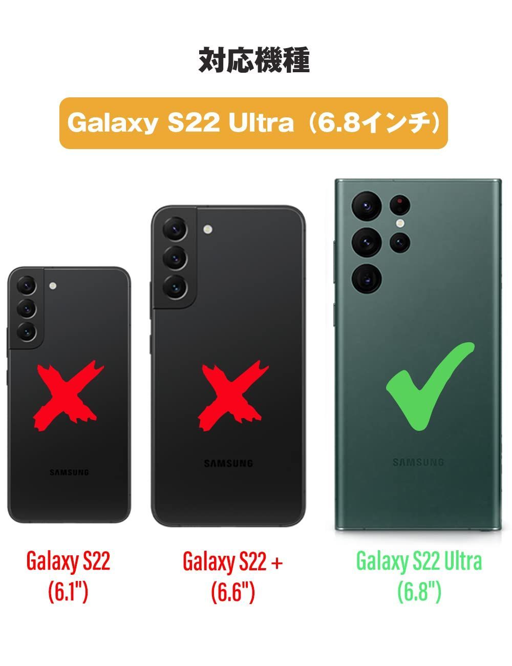 『 対応機種 』 Samsung Galaxy S22 Ultra / docomo SC-52C / au SCG14「6.8インチ」 用 ケース。ご注文を確認する前に、必ずお手持ちの機種と選択した機種をご確認ください。※ご注意:この製品はワイヤレス充電できません。