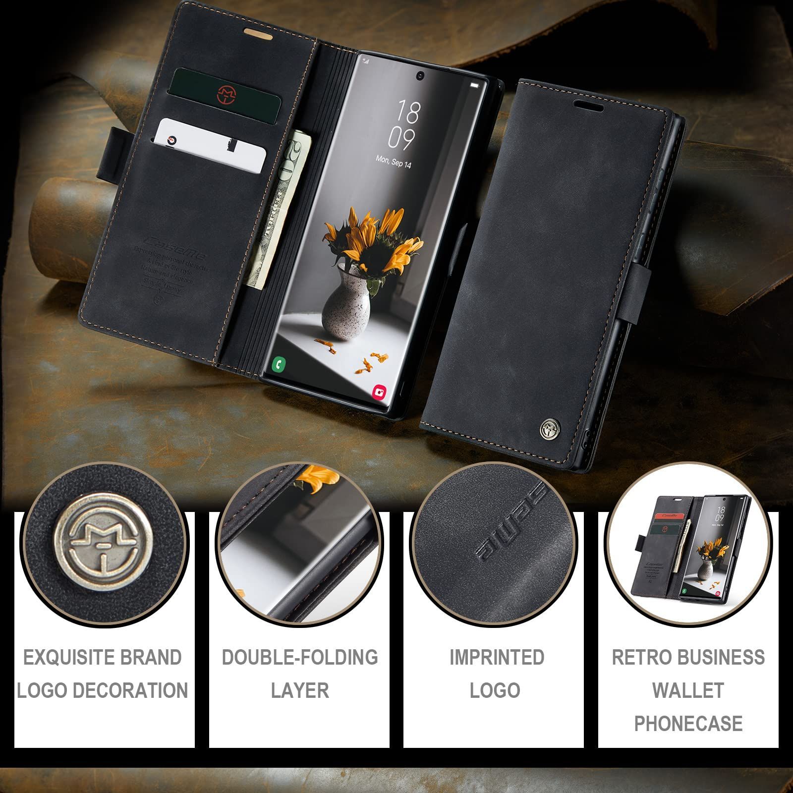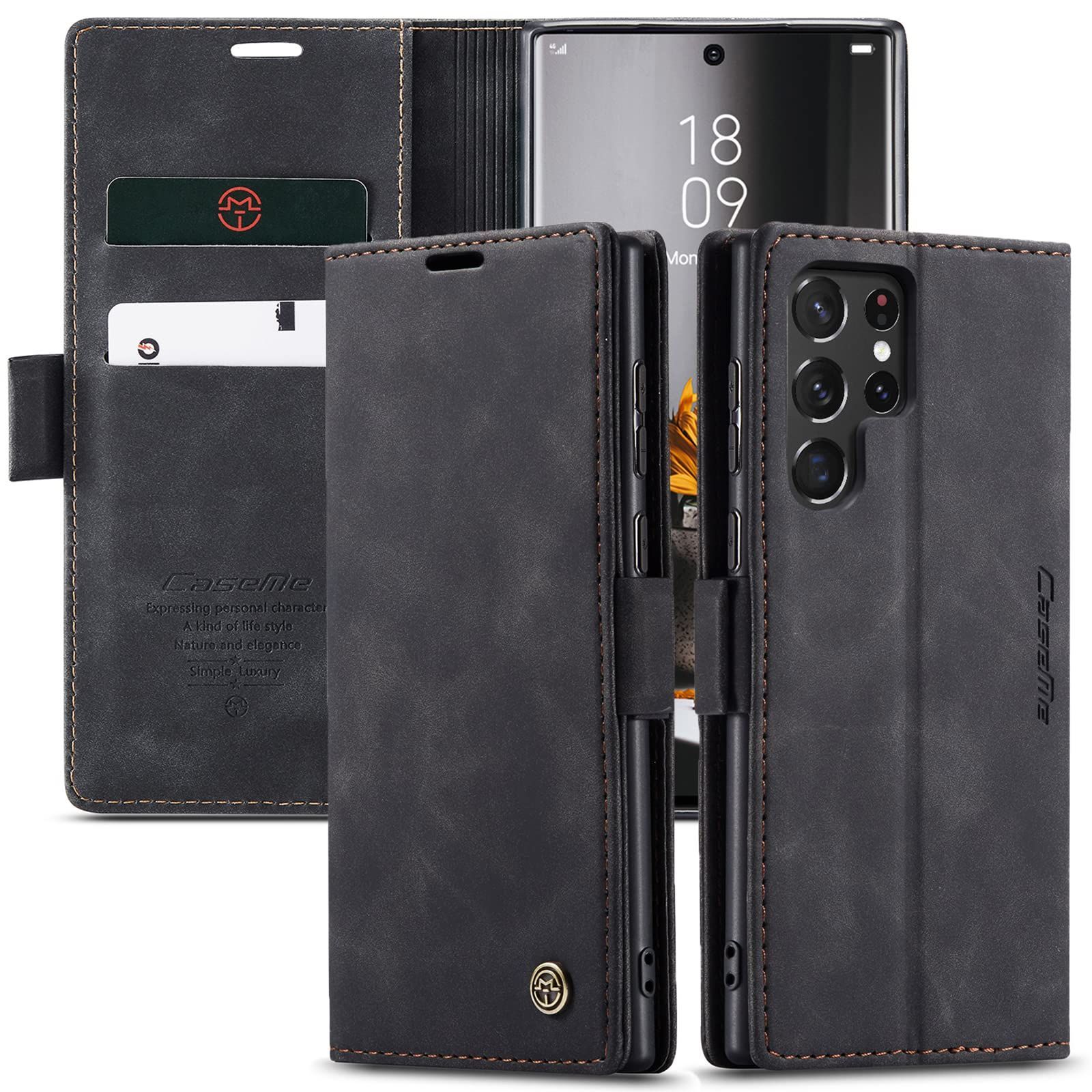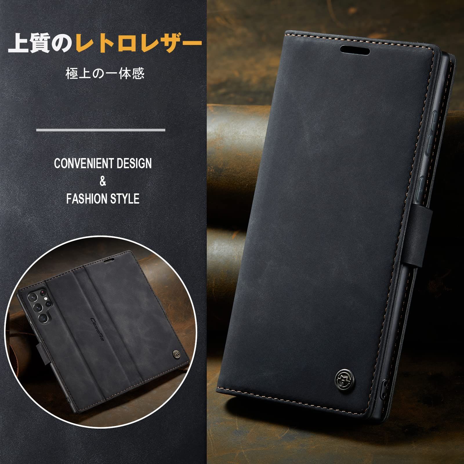 Galaxy S22 Ultra ケース 手帳型 Samsung ギャラクシー S22ウルトラ / SC-52C / SCG14 用 カバー OURJOY スマホケース 財布型 カード収納 横開き レザー TPU 耐衝撃 携帯カバー 横置き機能 マグネット式 おしゃれ ・ ブラック