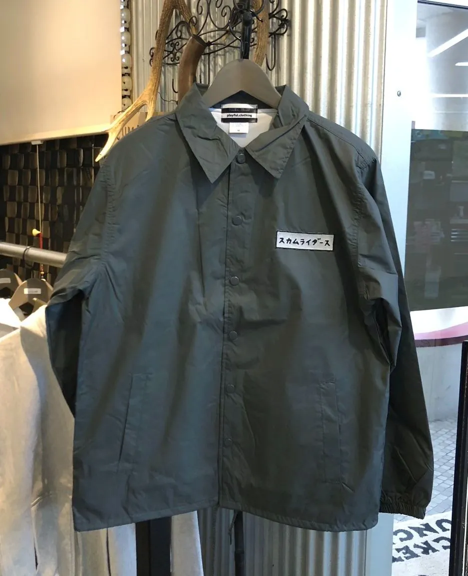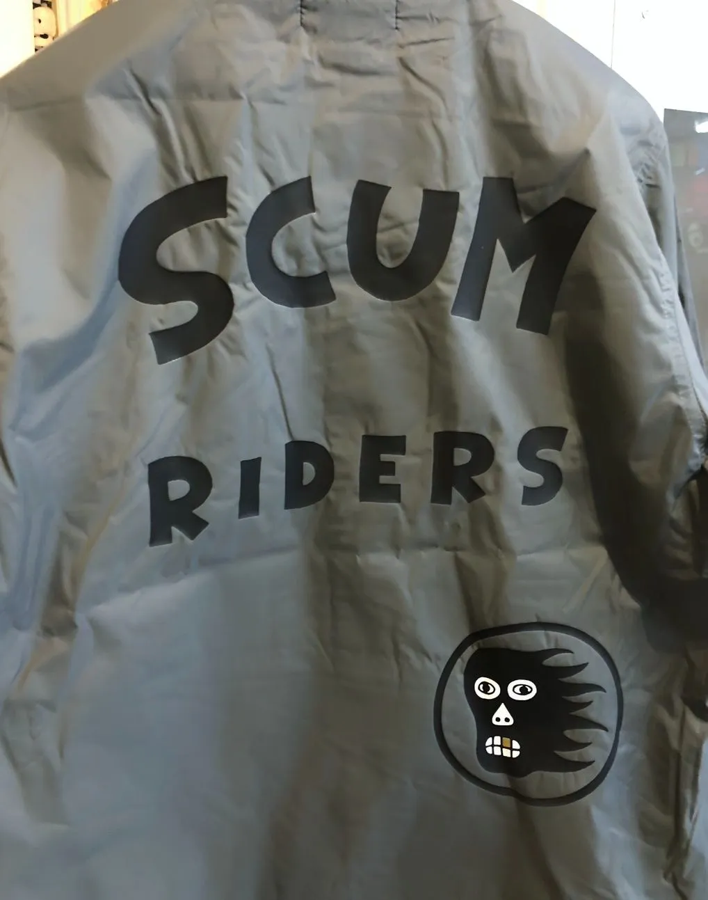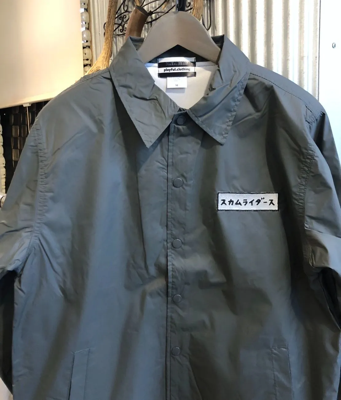 スカムボーイ タトゥー×パンダベアーズ 「スカムライダース」セメント グレー コーチジャケット 新品 ナイロン製