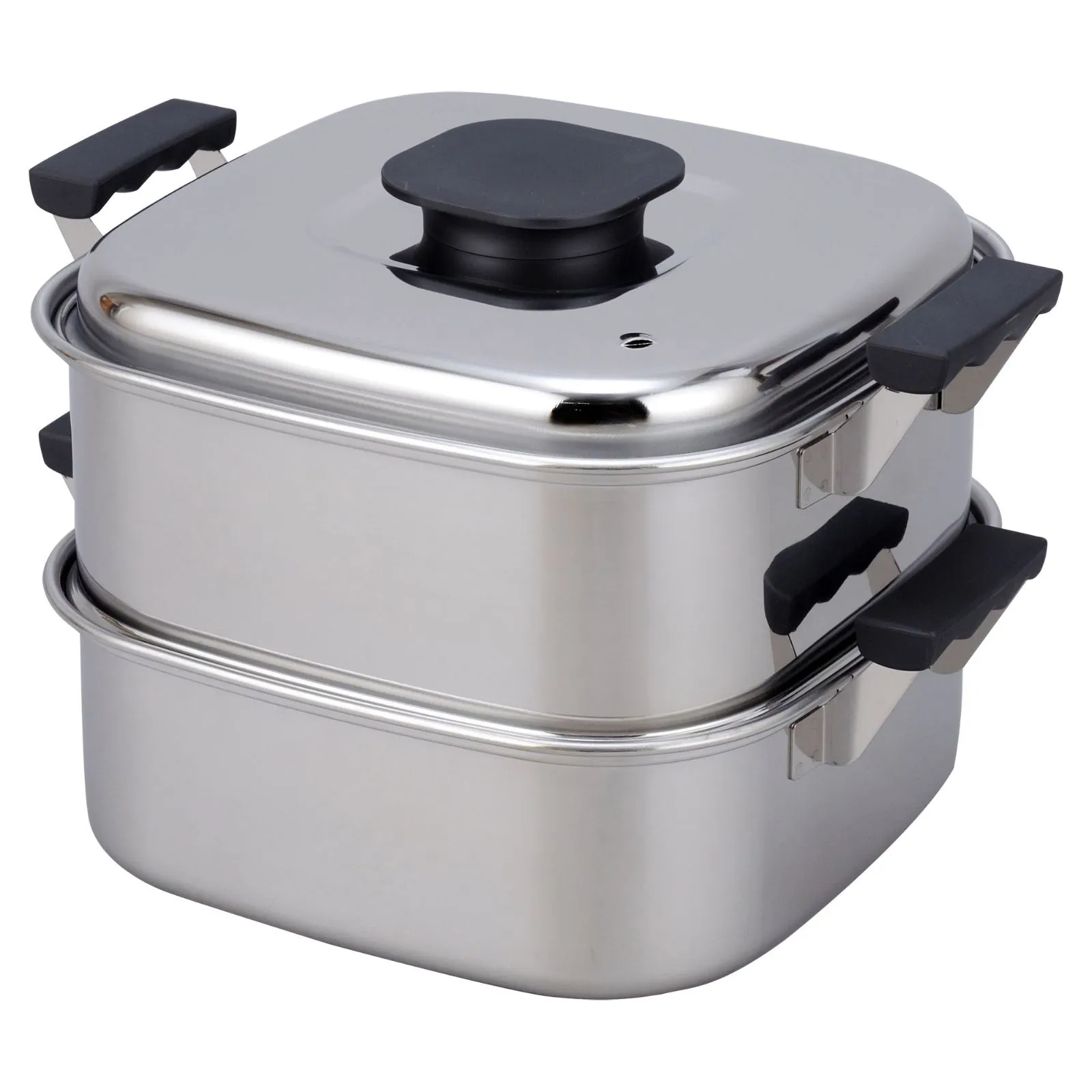 24cm_2段 神子島製作所 桃印 18-0角型蒸器 2段24cm 内寸240x240x中段深さ90x水槽の深さ95mm 3.9L