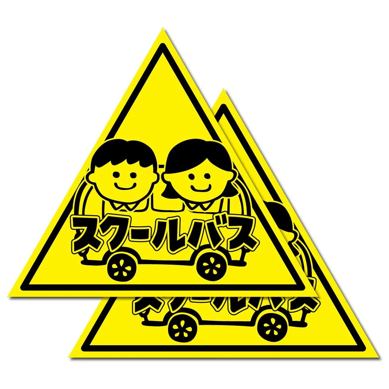 【サイズ選択可】(2枚入)車両用マグネット『スクールバス』(二人の子供) (小(300サイズ)2枚入)