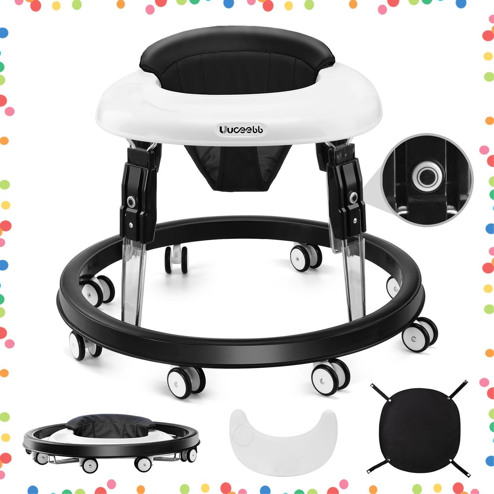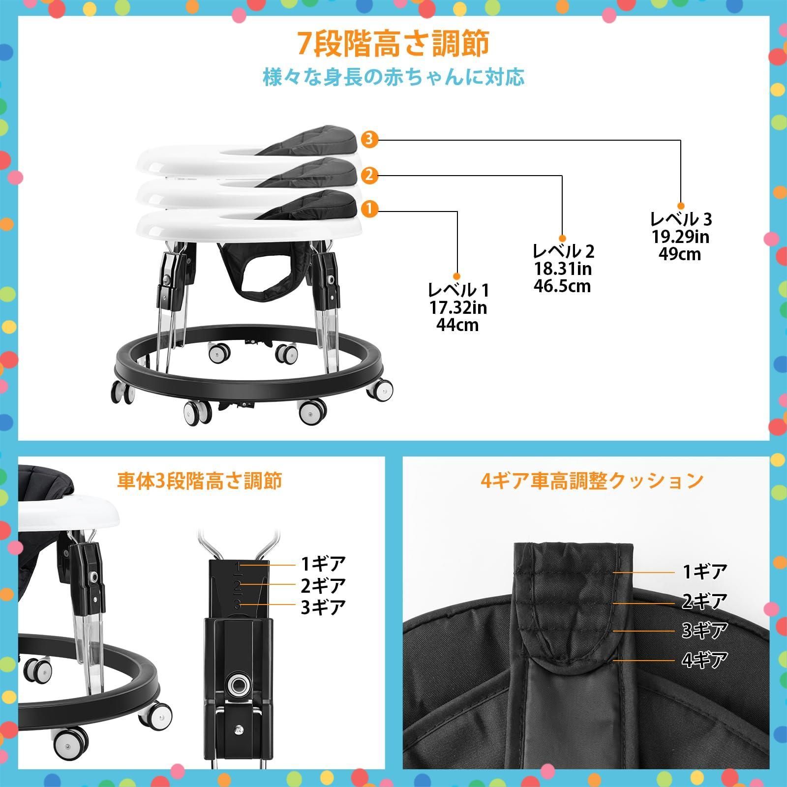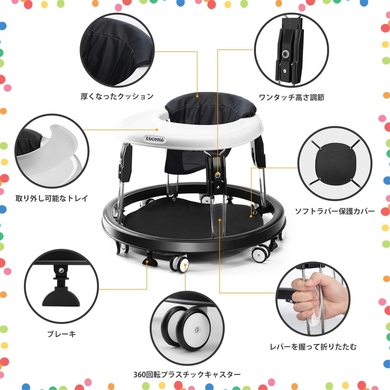 ベビーウォーカー 折りたたみ 歩行器赤ちゃん 高さ調整可能 横転防止 固定可能 食事用プレート付き 手押し車 ベビー用品 出産祝い おしゃれ ベビー用品 (ブラック)
