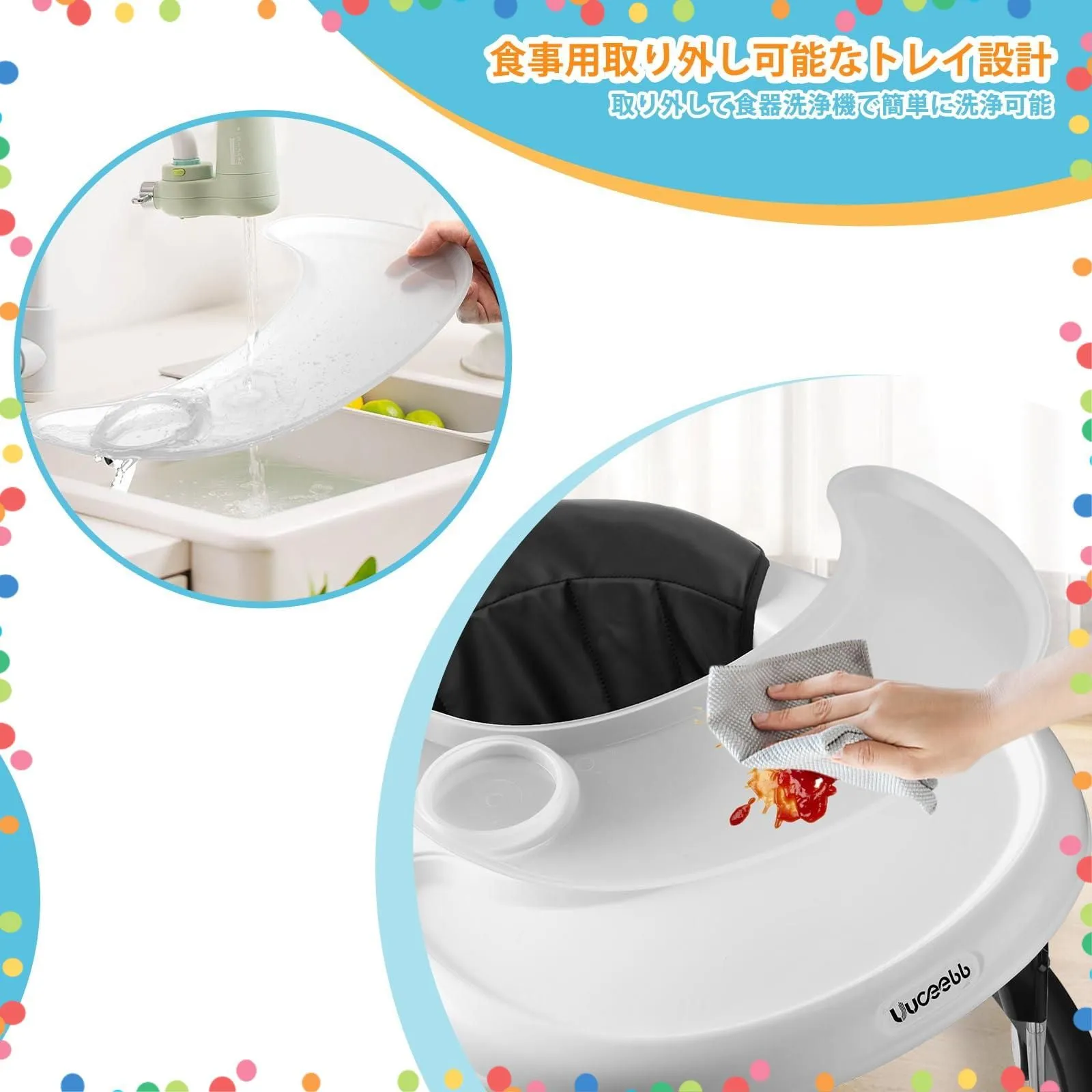 【取り外し可能なプレートのデザイン】 取り外し可能な厚手のディナープレート、食品グレードの原材料。BPA、PVC、フタル酸エステルを含みません。赤ちゃんに完全な安心感を与えます。拭き取りやお手入れが簡単で、食洗機でも洗えます。取り外して洗える通気性クッション、通気性が良く蒸れにくい、赤ちゃんの体に優しい。