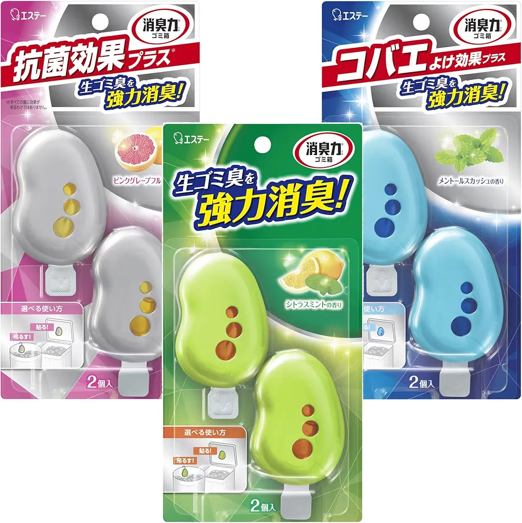 消臭力 ゴミ箱用 [3種アソートパック](シトラスミント・コバエよけ効果プラス メントールスカッシュ・抗菌プラス ピンクグレープフルーツ) 2個入×3個 ゴミ箱の消臭力 両用タイプ (貼る 吊るす) ゴミ箱 消臭剤 消臭 芳香剤 生ごみ