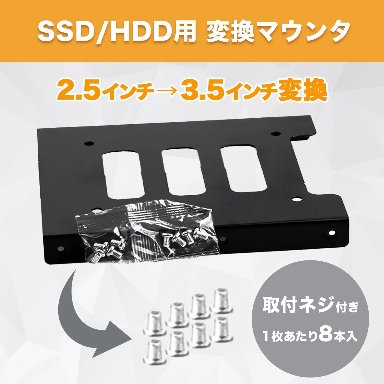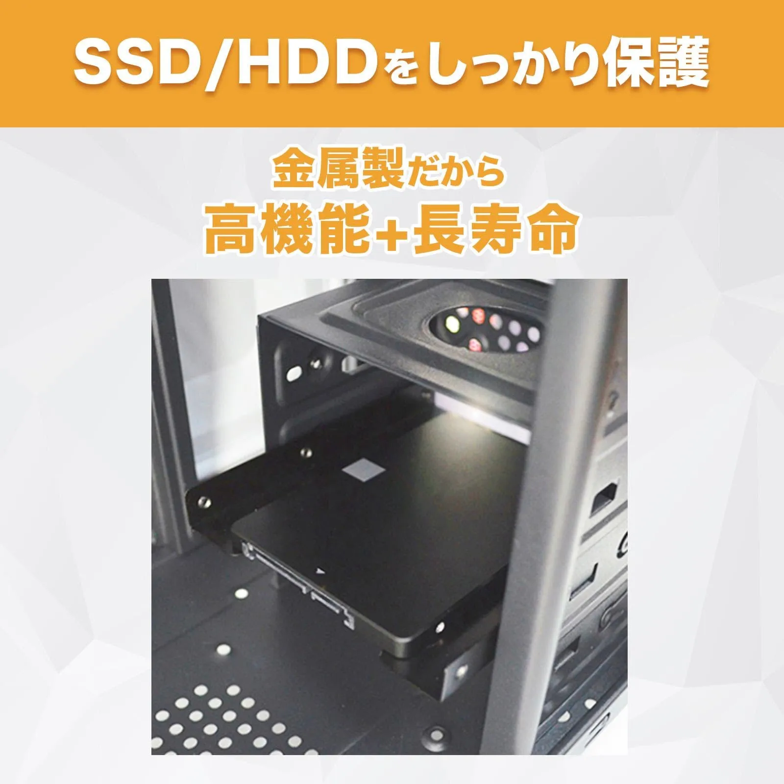 汎用性: 2.5インチのHDDやSSDを3.5インチベイに変換するため、さまざまなPCケースに対応。