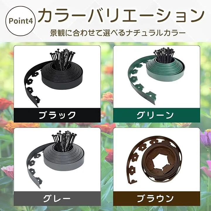「しっかりガード」L字型構造で土や芝の流出を防止し、花壇や芝生の境界をしっかり区切ります。