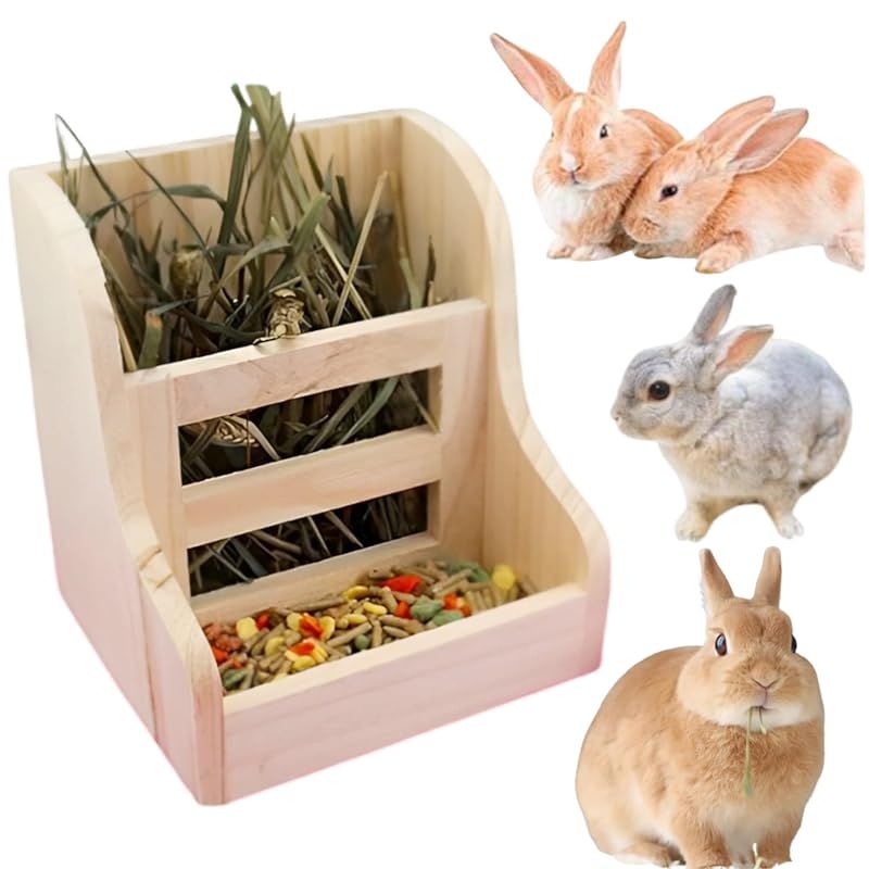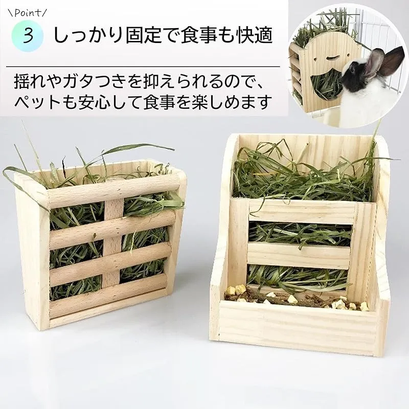 商品名:merrytime うさぎ 牧草入れ チモシーラック 干し草フィーダー 木製 ケージ固定 小動物用 モルモット チンチラ エサ入れ かじり木 飼育用品 乾燥草入れ 干し草ラック 牧草&フードディスペンサー型