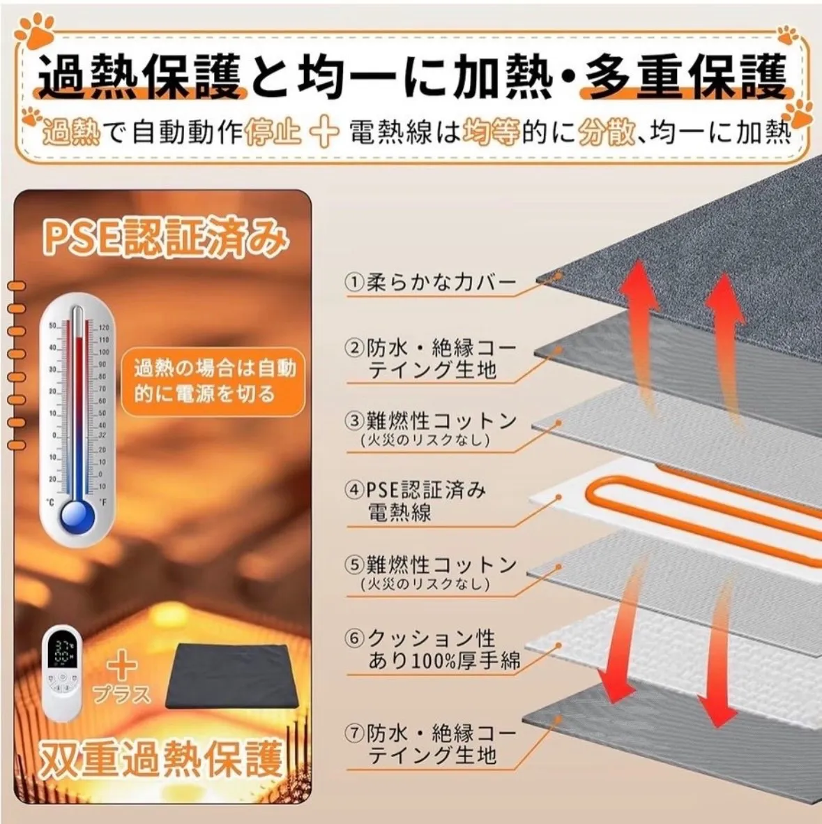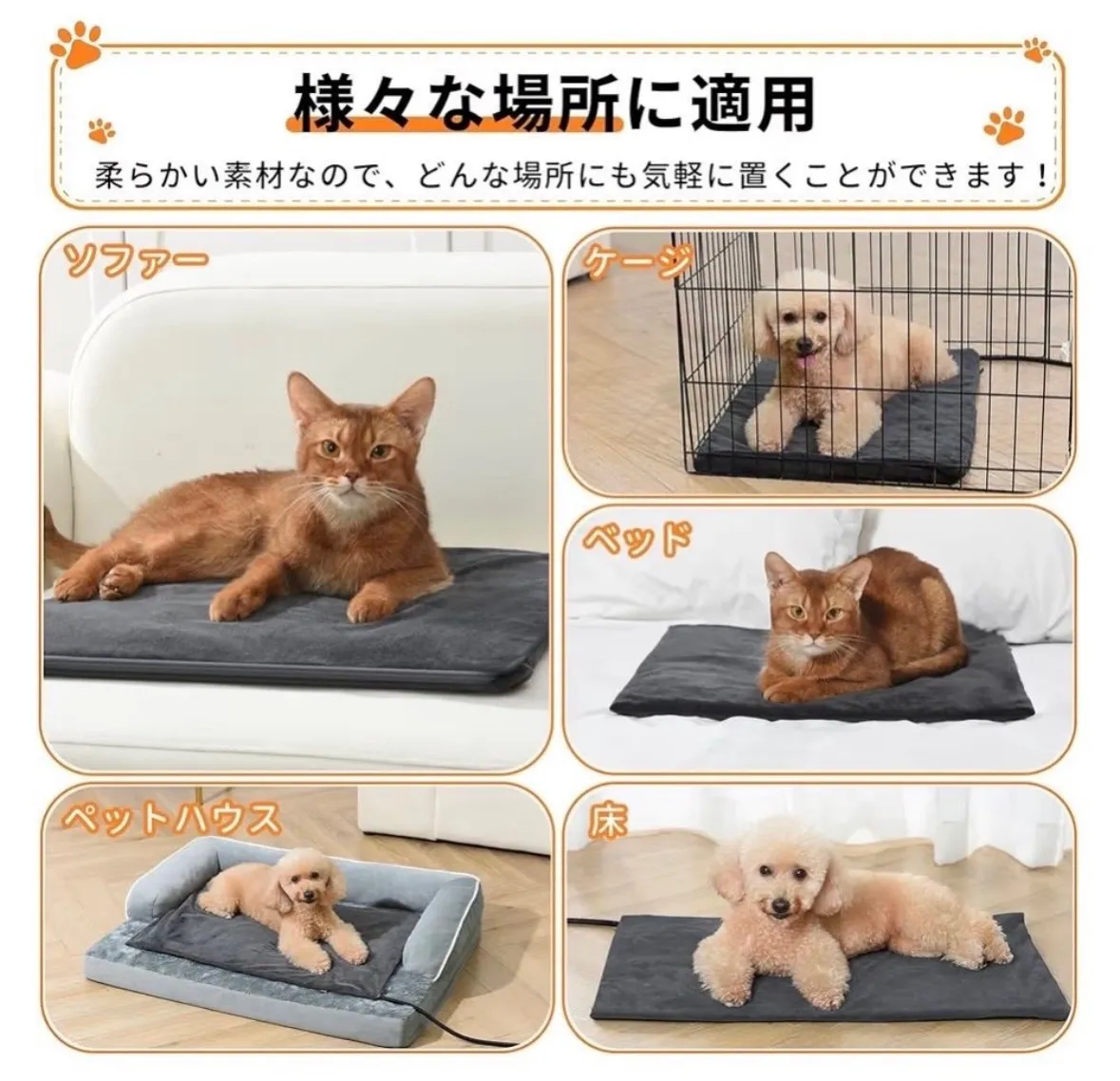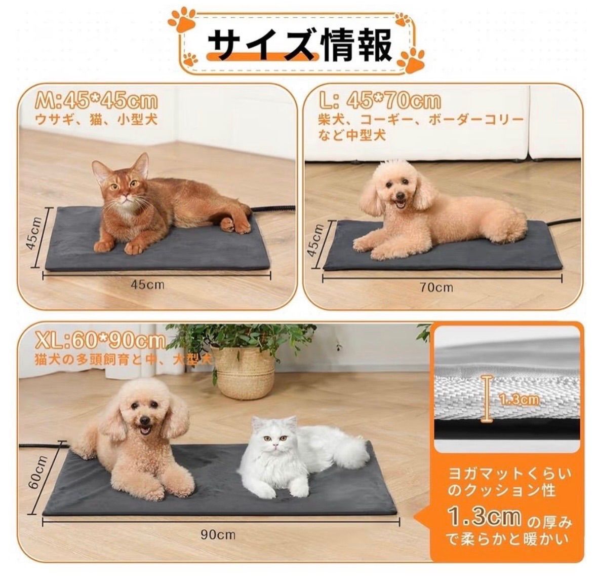 【安心安全ペット用ホット カーペット】この猫犬用ホットカーペットは七重構造のデザインを採用され、温かさを維持できる便利な暖房器具です。真冬の時期でも、ペットの身体を冷やしてしまう心配がありません。サイズ: L(45×70cm)、サモエド、柴犬、テディ、猫などの大中小型ペット、特に妊娠中や授乳中のペット、または介護が必要あるペットに最適!