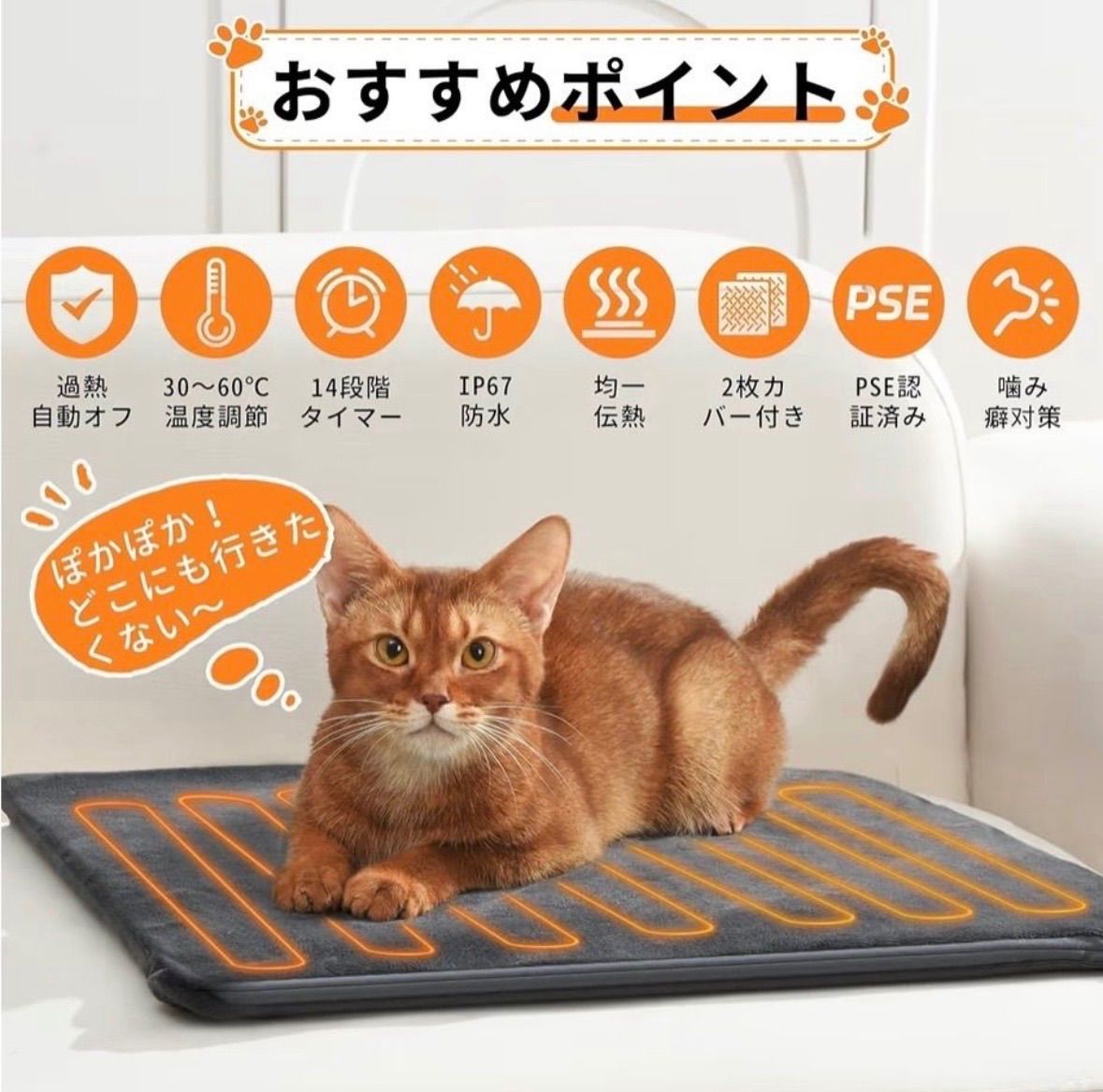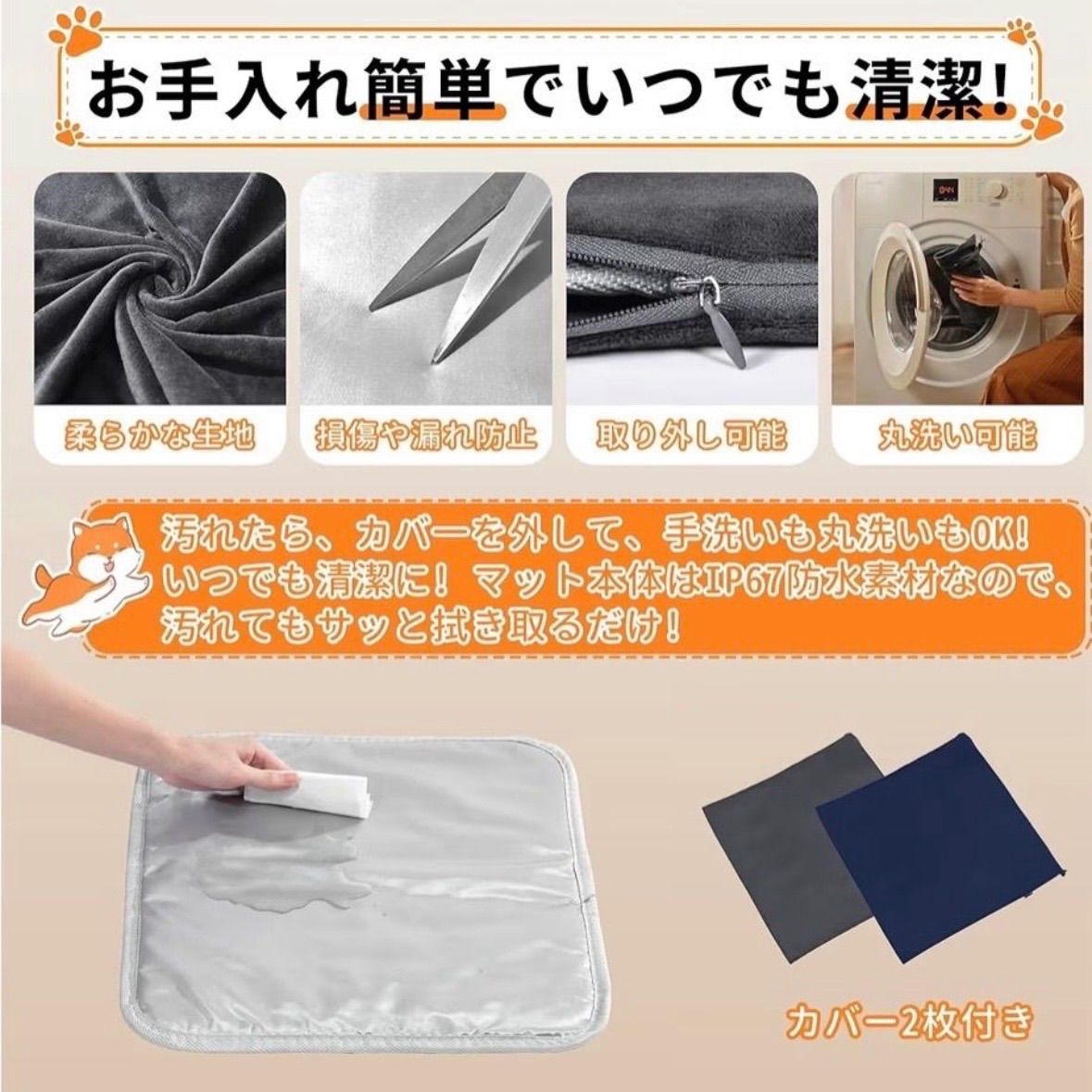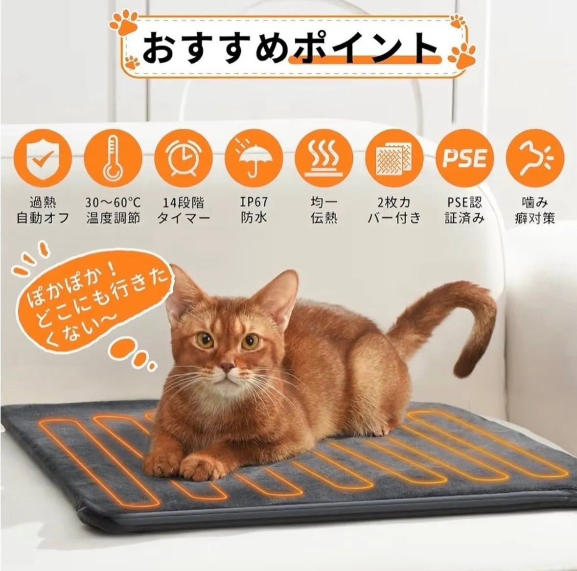 【安心安全ペット用ホット カーペット】この猫犬用ホットカーペットは七重構造のデザインを採用され、温かさを維持できる便利な暖房器具です。真冬の時期でも、ペットの身体を冷やしてしまう心配がありません。サイズ: L(45×70cm)、サモエド、柴犬、テディ、猫などの大中小型ペット、特に妊娠中や授乳中のペット、または介護が必要あるペットに最適!