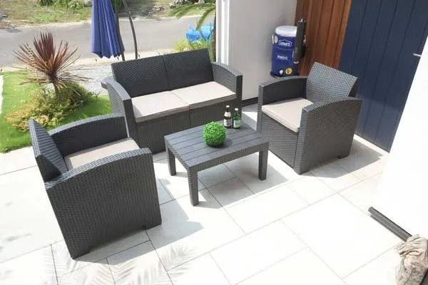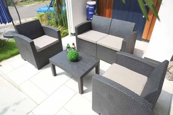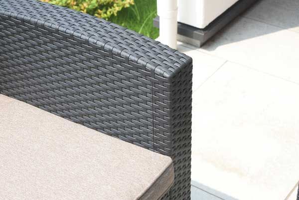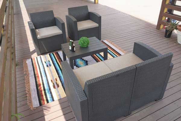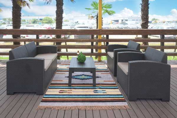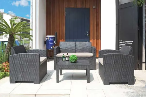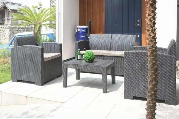定番 こだわり デザイン リーズナブル 激安 安い お買い得 お値打ち シンプル 庭 屋外 野外 室外 テラス ベランダ バルコニー デッキ 持ち運び 個性的 軽量 ベランピング おうちキャンプ 黒色 ブラック 高級感 クッション座面付き シック オリエンタル 旅館 ホテル 南国 温泉 温浴施設 スパ ロビー フロア 4点セット 4人家族 編み込み風 ビーチ プールサイド ソファー ローテーブル