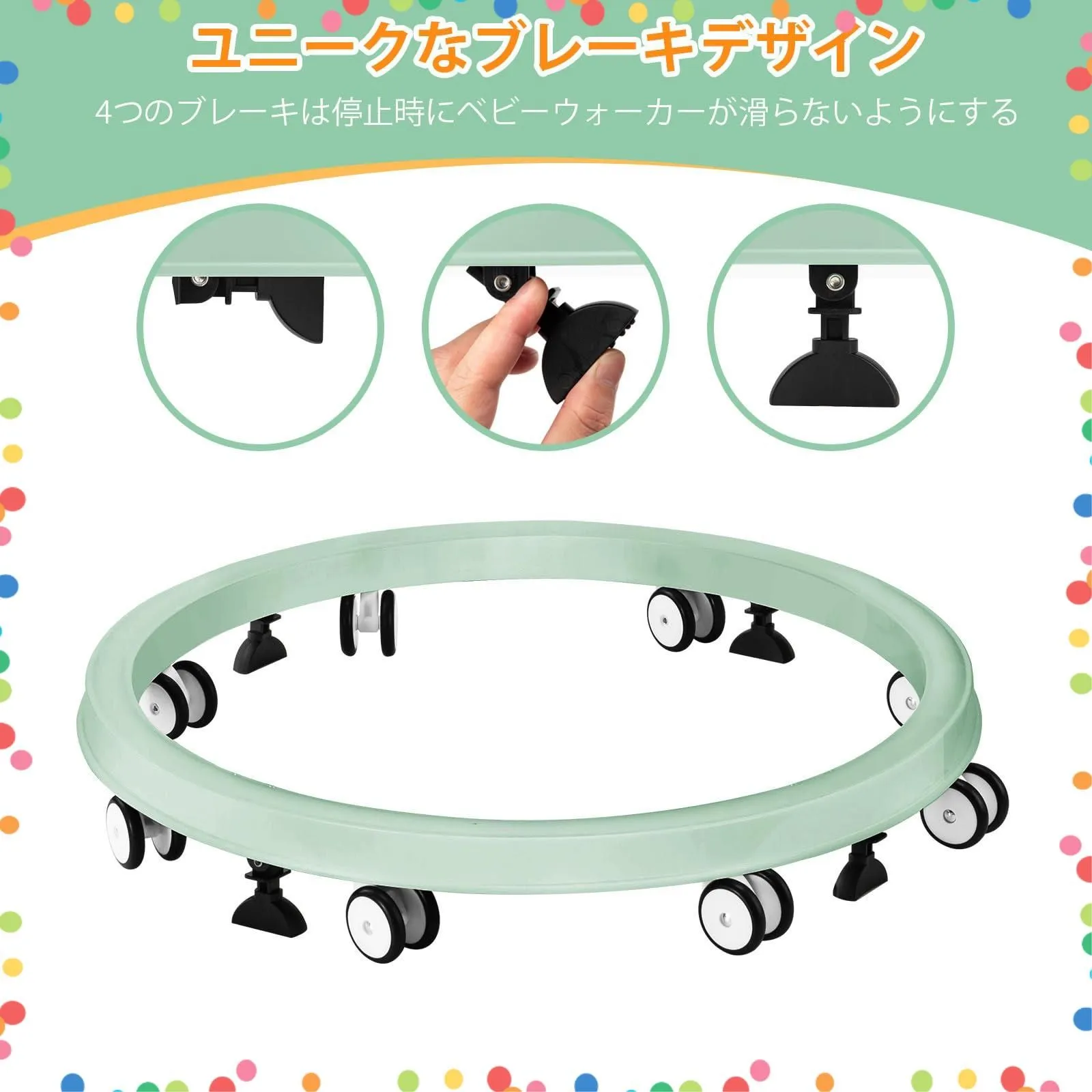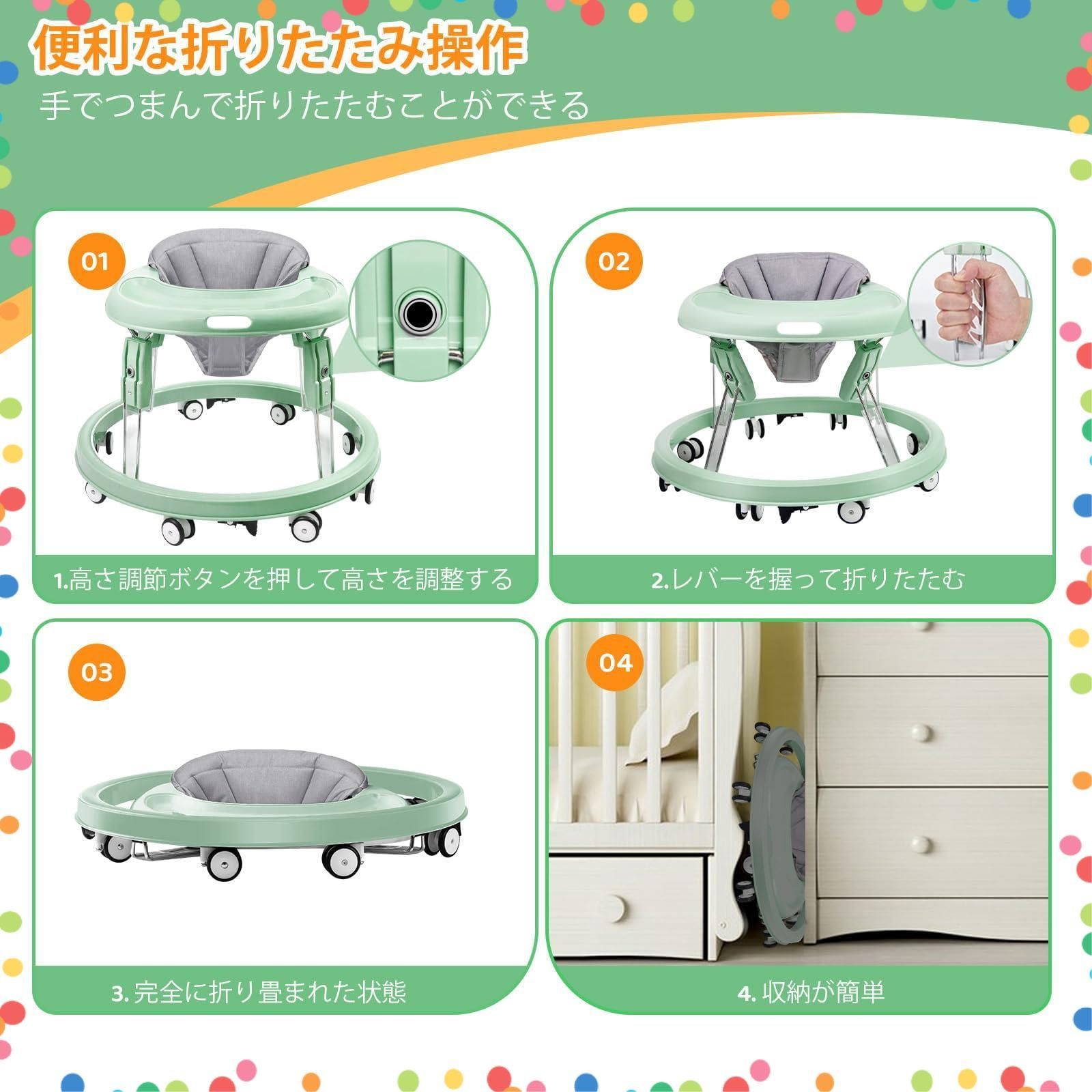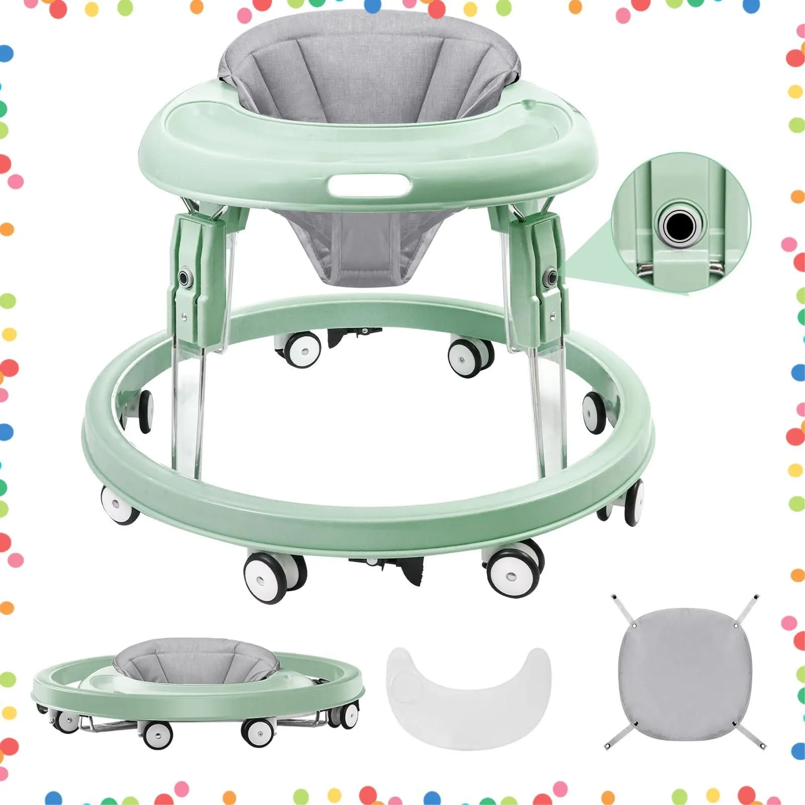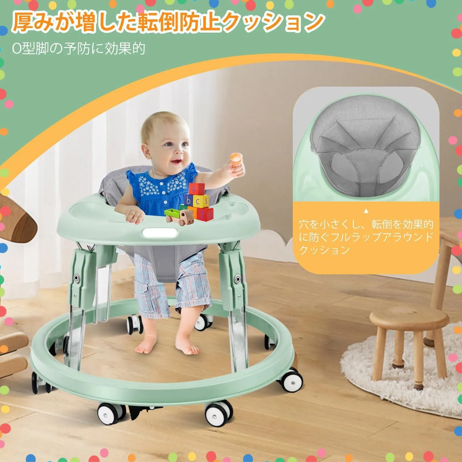 Uuoeebb ベビーウォーカー 折りたたみ 歩行器赤ちゃん 高さ調整可能 横転防止 固定可能 食事用プレート付き 手押し車 ベビー用品 出産祝い おしゃれ ベビー用品 (グリーン)