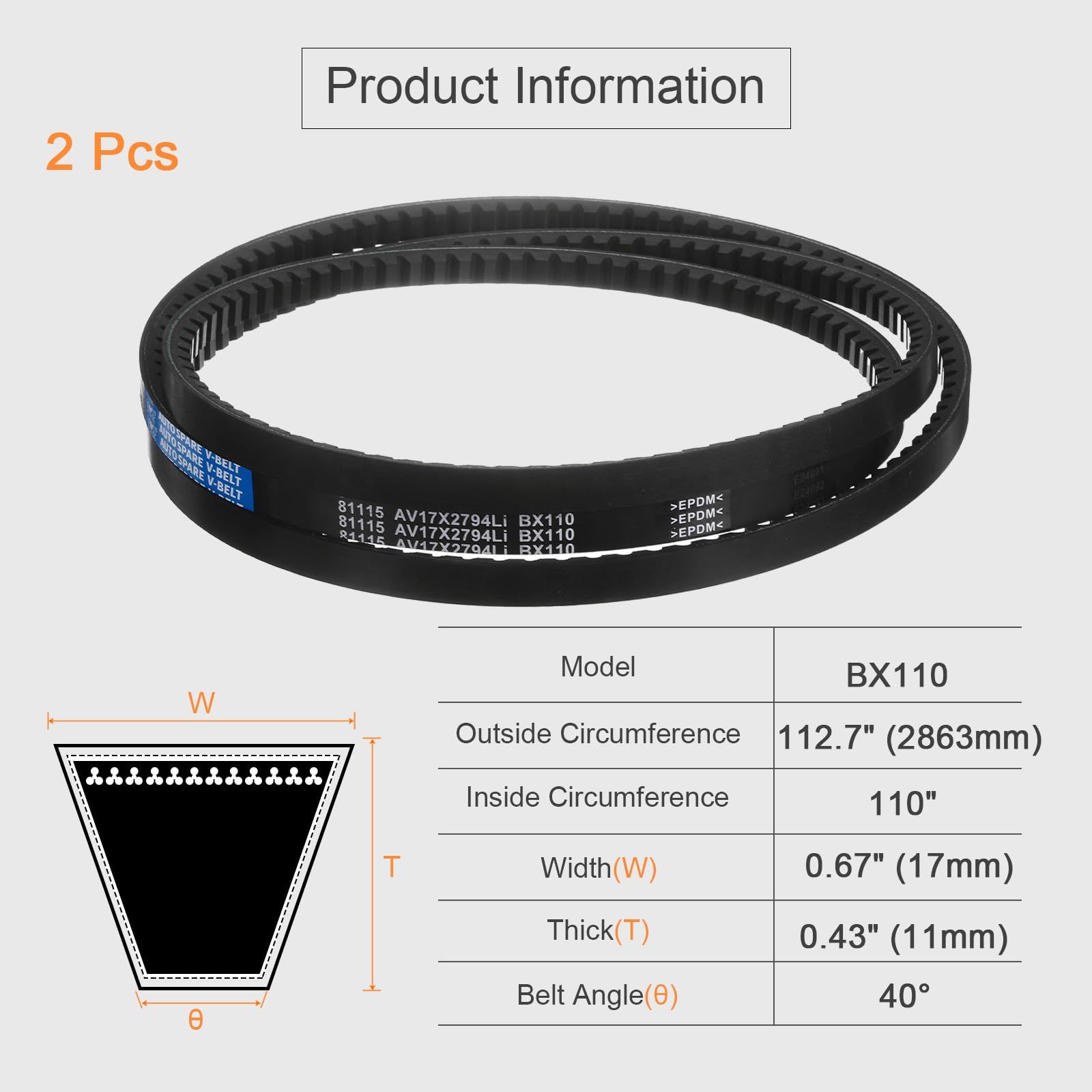 uxcell 2 個 BX110 EPDM V ベルト 未加工エッジ コグド工業用ゴム V ベルト 0.67 インチ幅 x 110 インチ内周