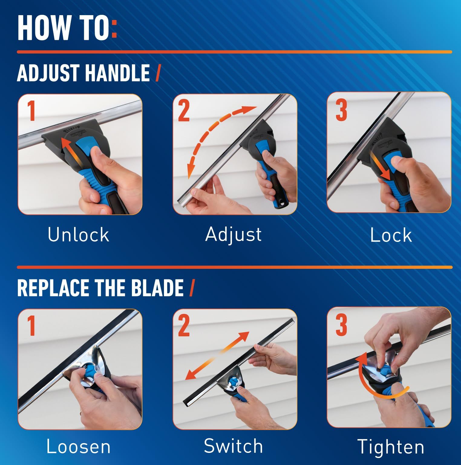 【筋のない効果】窓掃除用の錆びにくいツールは、プロ級のゴムを使用し、筋のない仕上がりになっています。