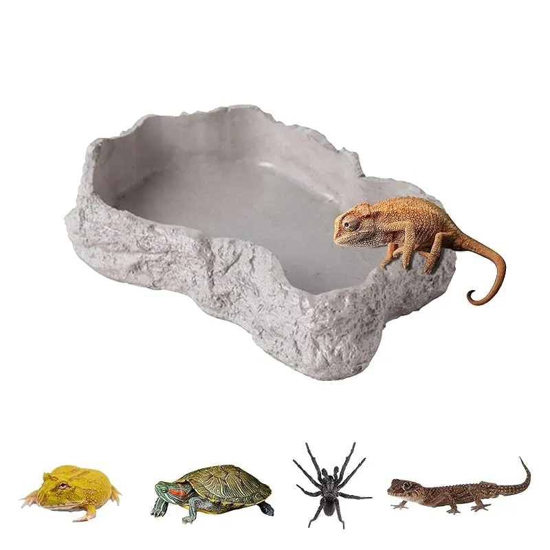 商品名:NyyGlykys 爬虫類 水入れ 餌入れ エサ皿 水飲み皿 自然の岩イメージ セメント素材 ひっくり返しにくい 安定性 爬虫類の食べ物と水皿 ペット 給餌板 爬虫類、両生類専用 陸亀 ゲトカゲ ヤドカリ ガエル ヤモリ オントカゲ 飼育ケース内装 (原色,