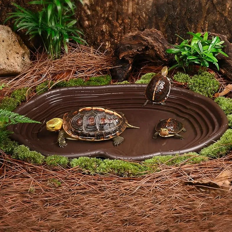 多機能:この製品はガラス容器に入れて水トレイまたは食品トレイとして使用できます。 お風呂でも使用でき、亀も喜んで浸かるでしょう。 DIYのタートルガーデンに最適です。