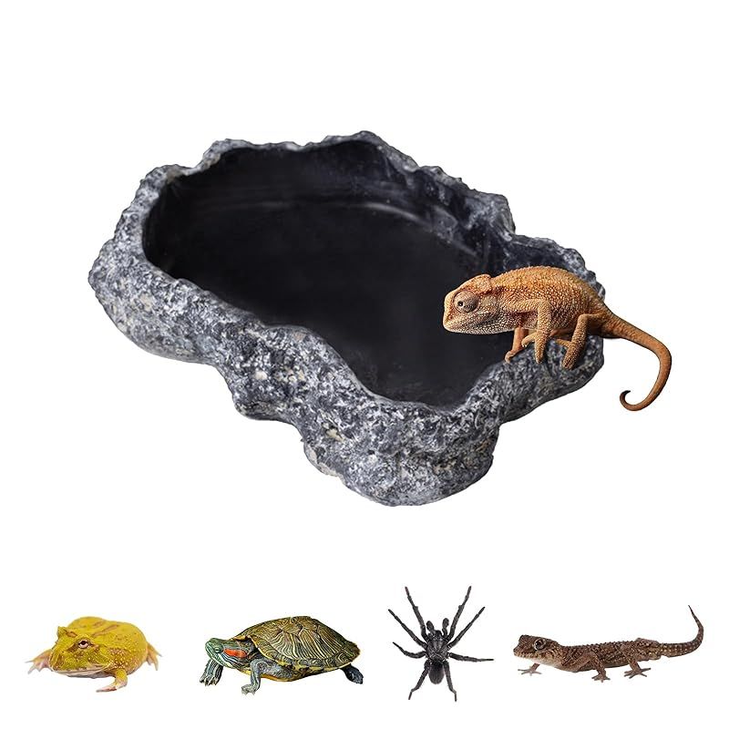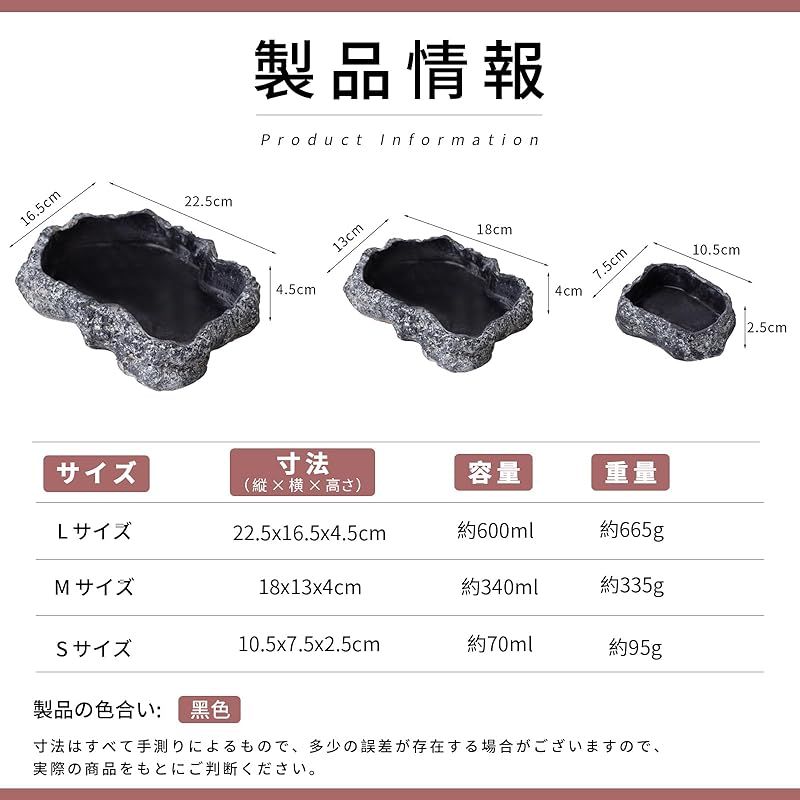 商品名:NyyGlykys 爬虫類 水入れ 餌入れ エサ皿 水飲み皿 自然の岩イメージ セメント素材 ひっくり返しにくい 安定性 爬虫類の食べ物と水皿 ペット 給餌板 爬虫類、両生類専用 陸亀 ゲトカゲ ヤドカリ ガエル ヤモリ オントカゲ 飼育ケース内装 (色, L