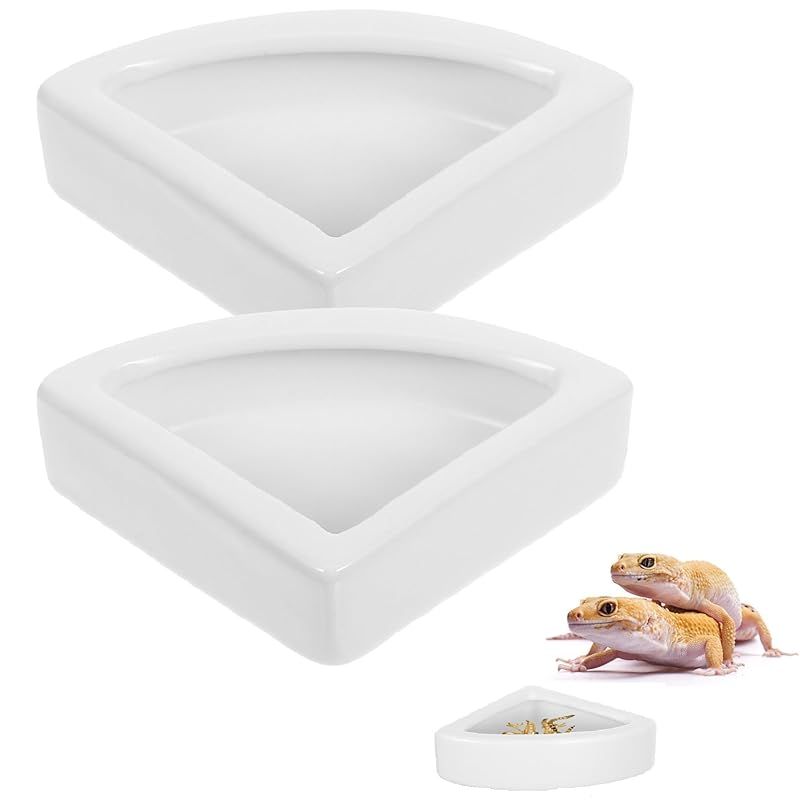 Kisangel 2個 セラミック爬虫類ボウル クレステッドゲッコーの ペットスパイダーボウル 爬虫類用品 ギニア料理 みみず皿 動物 爬虫類用フィーダー 爬虫類の餌入れ 爬虫類の餌皿 白い