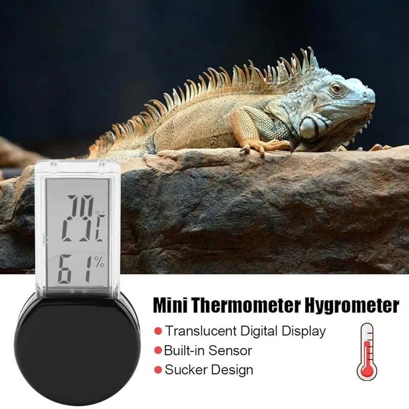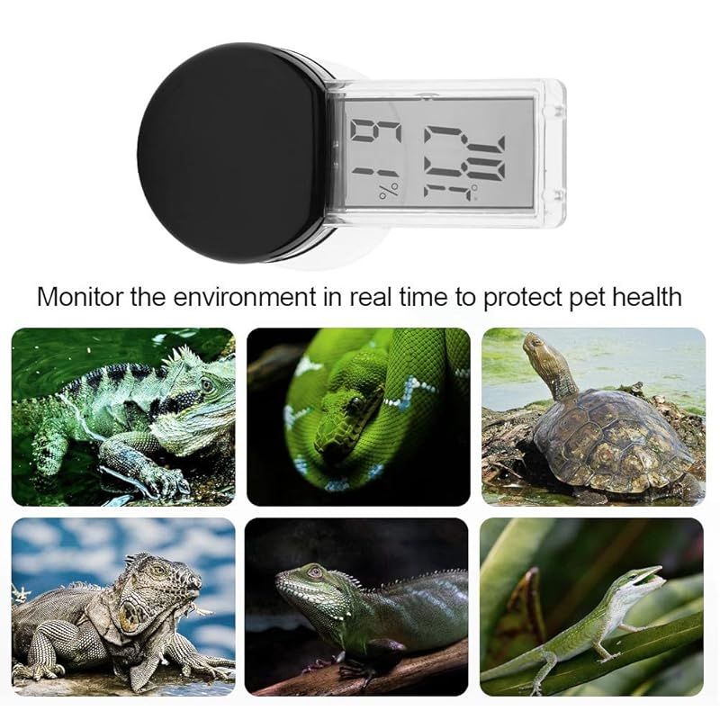 Ongwan トカゲ 爬虫類用デジタル温湿度計 湿度計 温度計 防水 (ブラック)