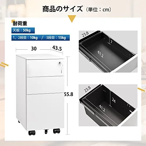 【3段オールロック】こちらの商品は、一箇所を施錠すれば、すべての引き出しがロックされるので、安心して使用することができます。大切な書類やプライベートをしっかり守りし、セキュリティ面も安心です。