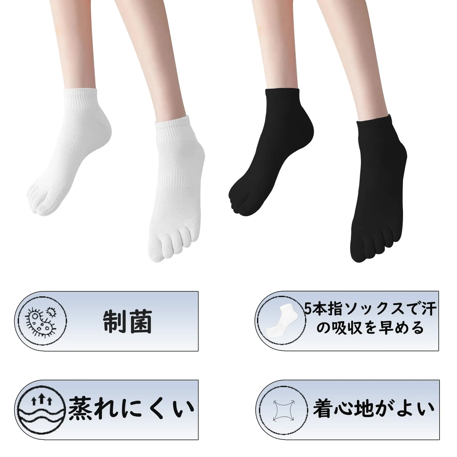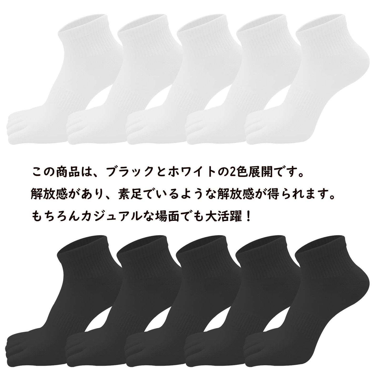 [XKAOPUTE] 五本指ソックス くるぶし丈 クルー丈 レディース 女性 スポーツ用 ランニングソックス ショート丈 綿 5本指 靴下 通気 頑丈 無臭 5足セット