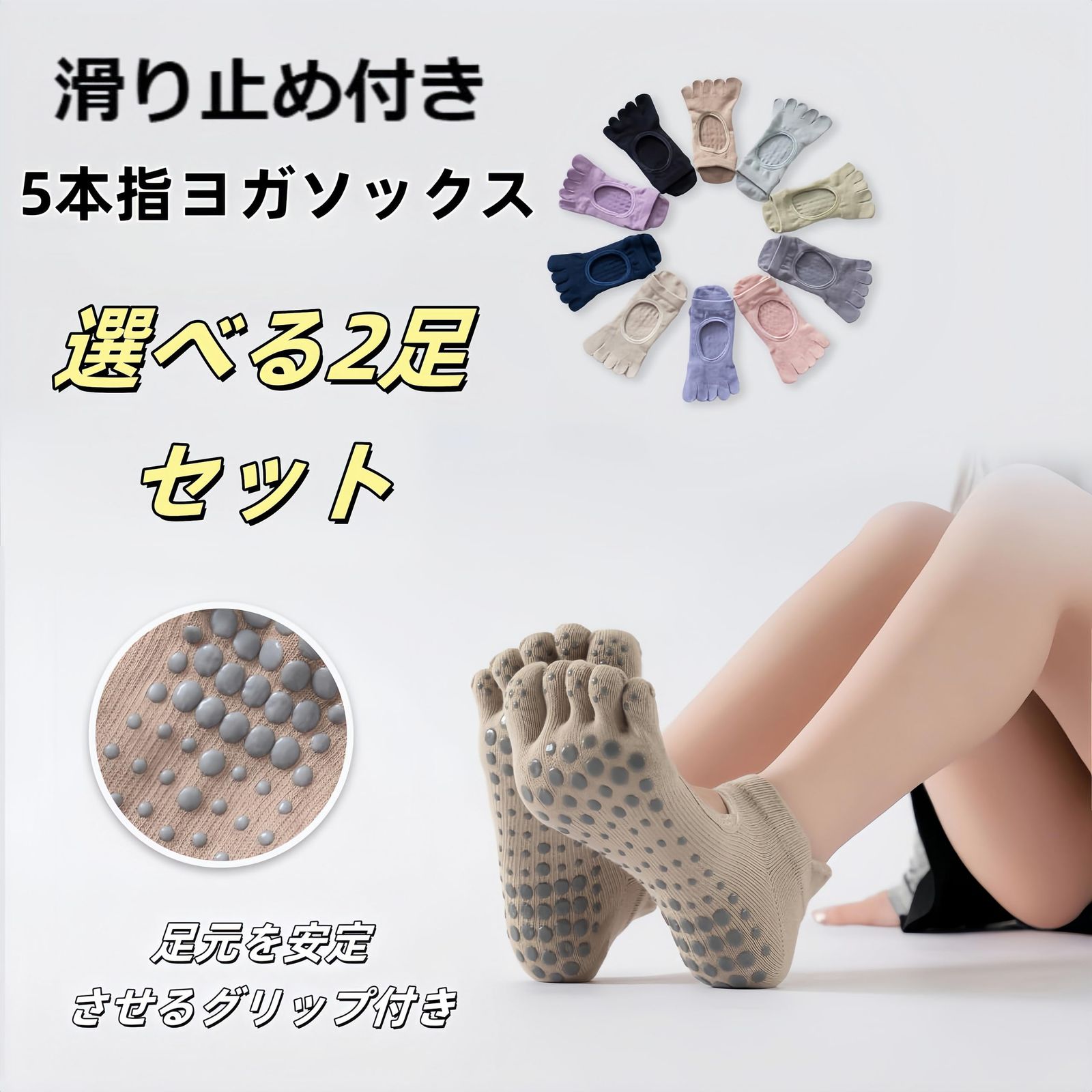[Suerba] ピラティス 靴下 5本指 ヨガソックス 滑り止め レディース 2足セット 耐久性 冷房/汗対策