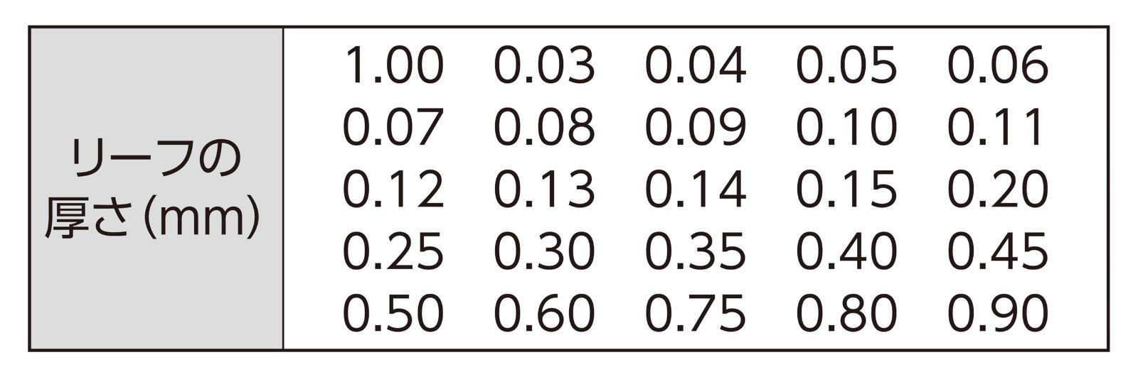 ●用途にあわせて豊富な種類の長さとリーフをそろえたシックネスゲージです。