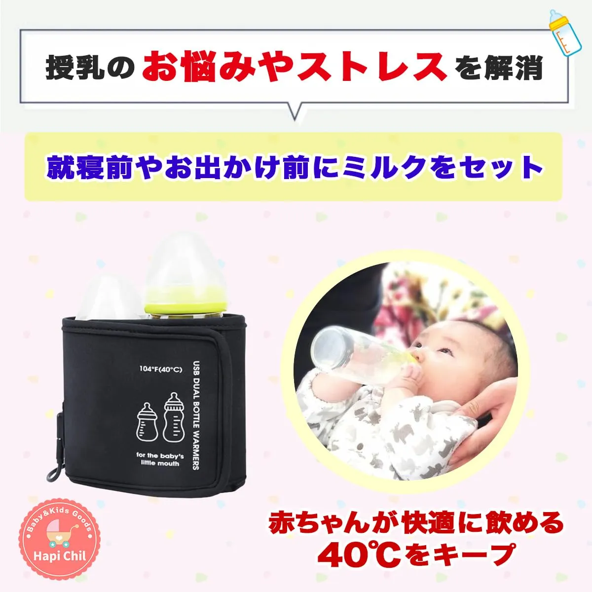 【保育士セレクト】 持ち運び USB給電 哺乳瓶ウォーマー 日本語説明書 付き