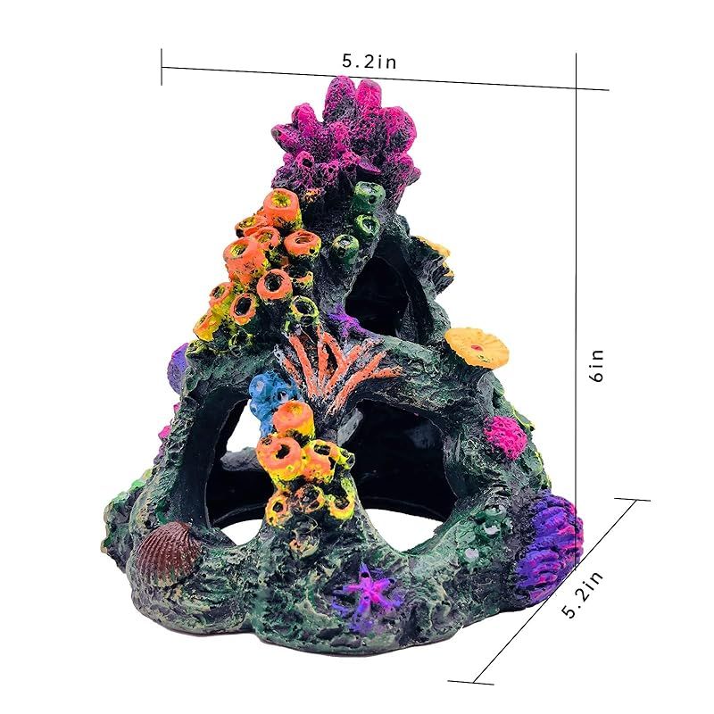【パッケージ内容】カラフルなサンゴ装飾の長さは13.2 cm、幅は13.2 cm、高さは15.2cmで、人工水草×4個。しかし、この装飾は手動測定であるため、データは逸脱する可能性があります。ご了承ください。