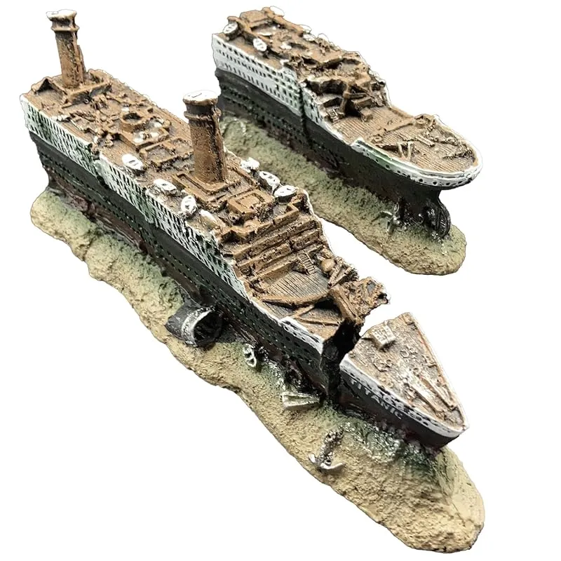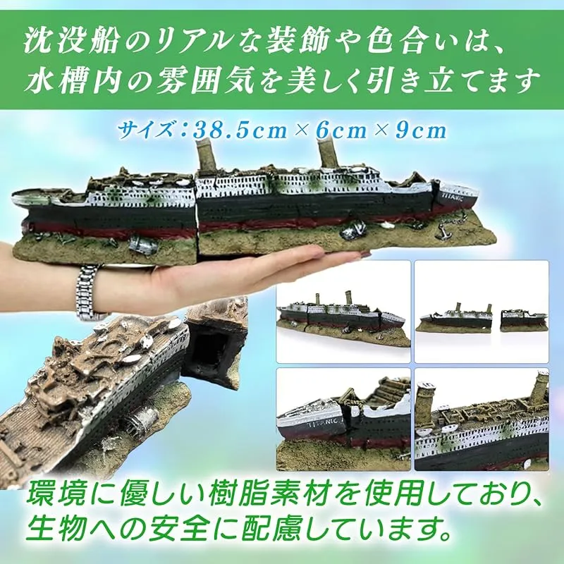 豪華客船タイタニック号の水槽用オブジェで、神秘的な海底の世界観をアクアリウムで楽しめます。
