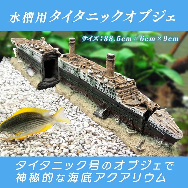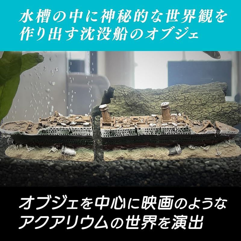 ・豪華客船タイタニック号の水槽用オブジェで、神秘的な海底の世界観をアクアリウムで楽しめます。