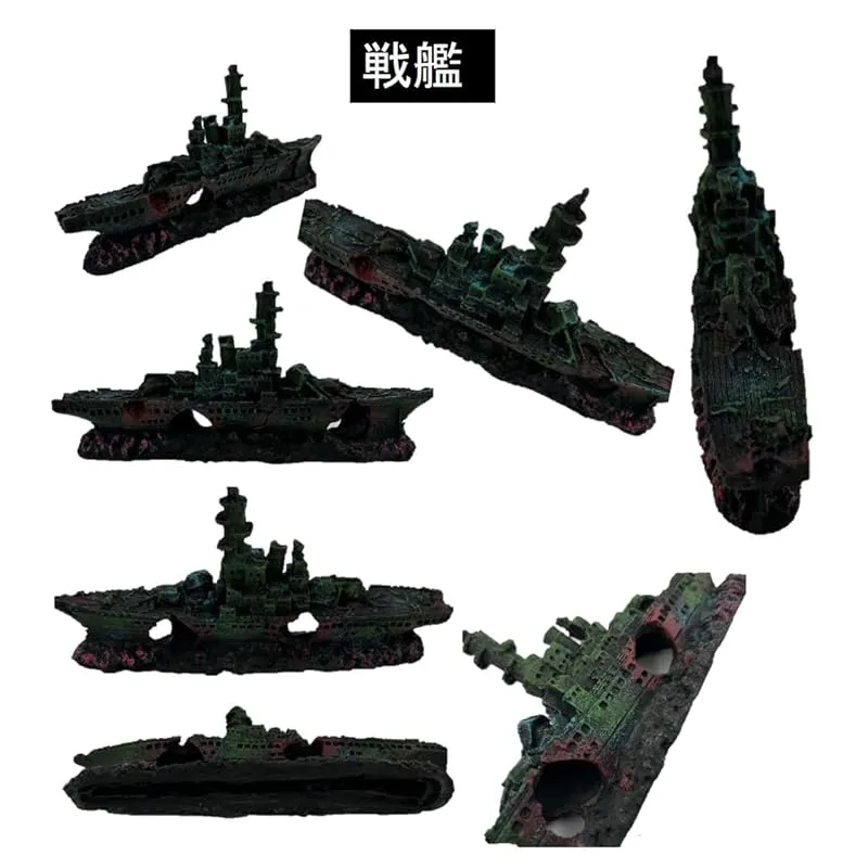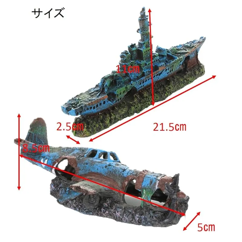 商品名:ST TS アクアリウム 水槽 オブジェ 戦闘機 潜水艦 戦艦 隠れ家 アクアリウムオーナメント インテリア 置物 飾り (戦闘機&戦艦)