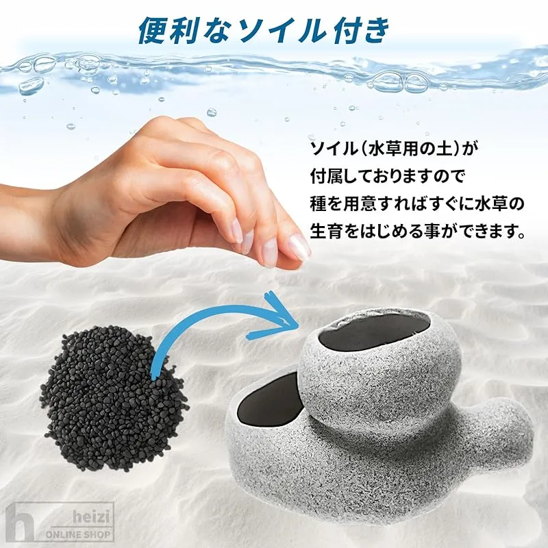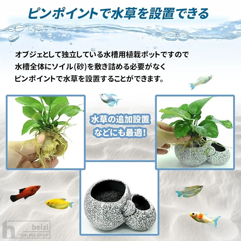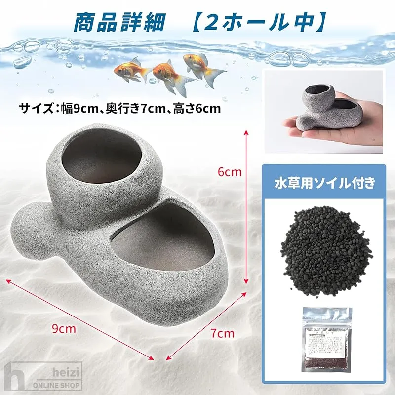 商品名:heizi 水槽 水草 鉢 ソイル 砂 付き 水槽ポット アクアリウム 石 オブジェ メダカ 熱帯魚 (2ホール 中)