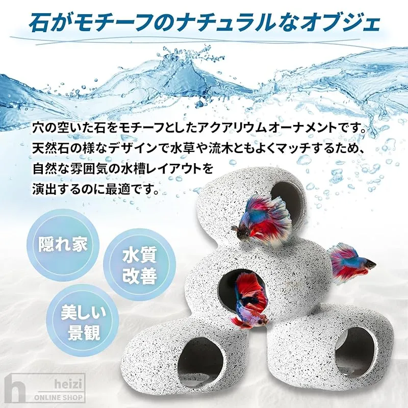 商品名:heizi アクアリウム 石 水槽 オブジェ 魚 隠れ家 オーナメント 置物 メダカ 熱帯魚 金魚 (石 3個 中)