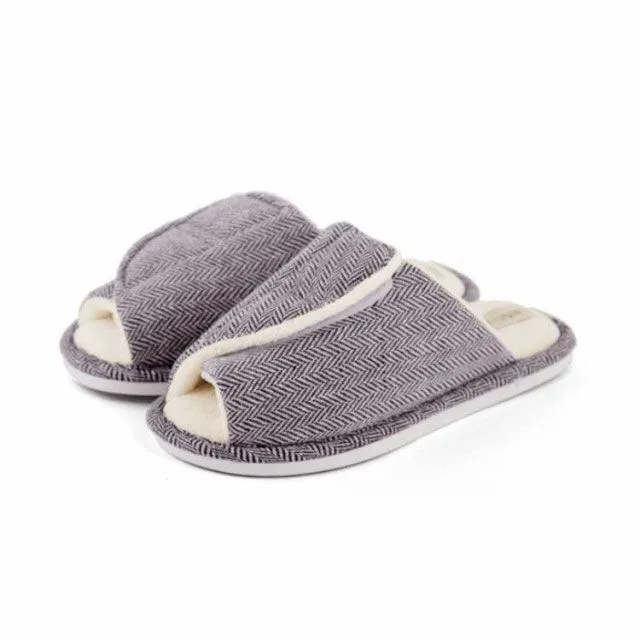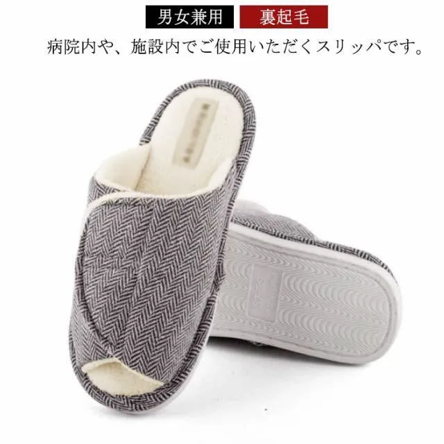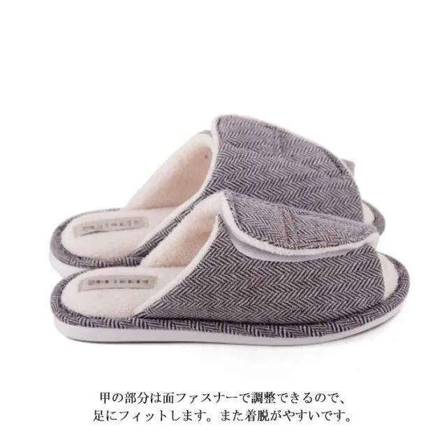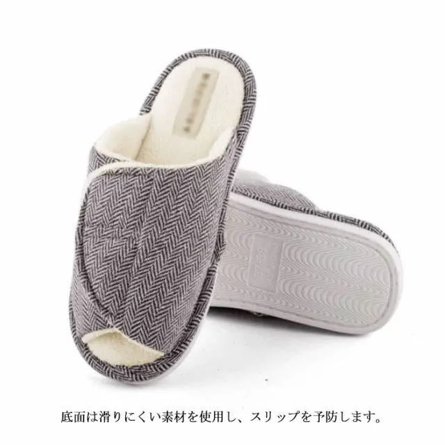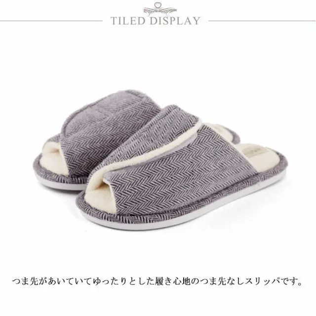 つま先があいていてゆったりとした履き心地のつま先なしスリッパです。